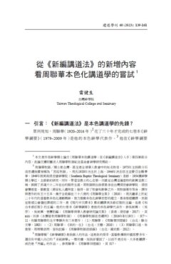 從《新編講道法》的新增內容看周聯華本色化講道學的嘗試 / 雷健生