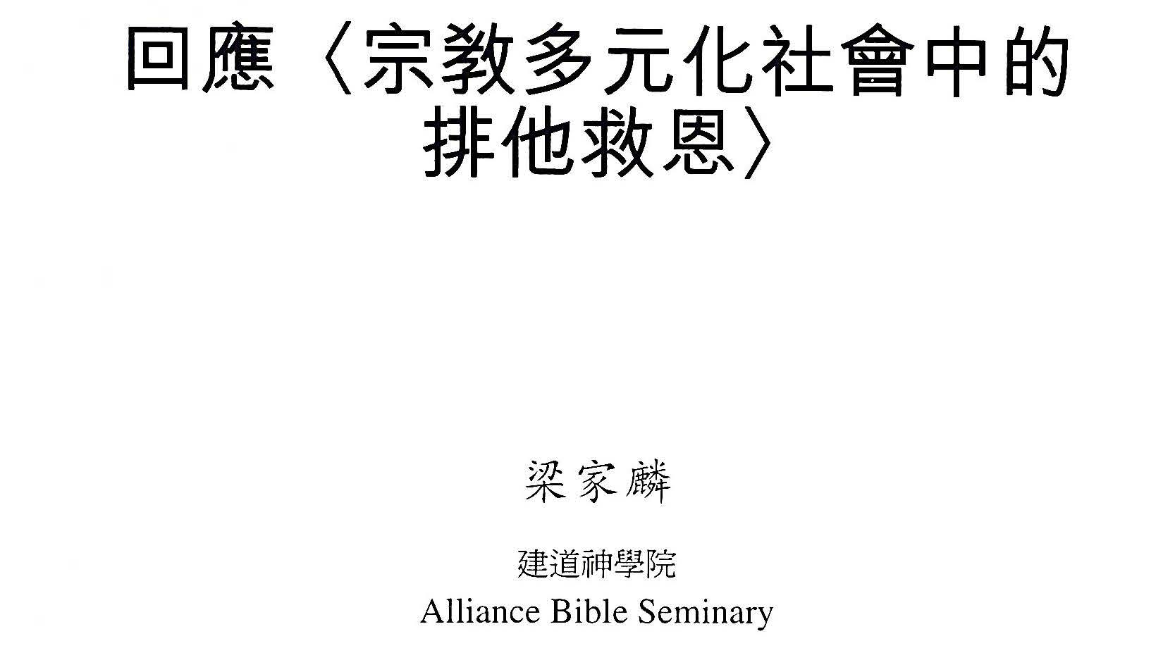 回應〈宗教多元化社會中的排他救恩〉/梁家麟