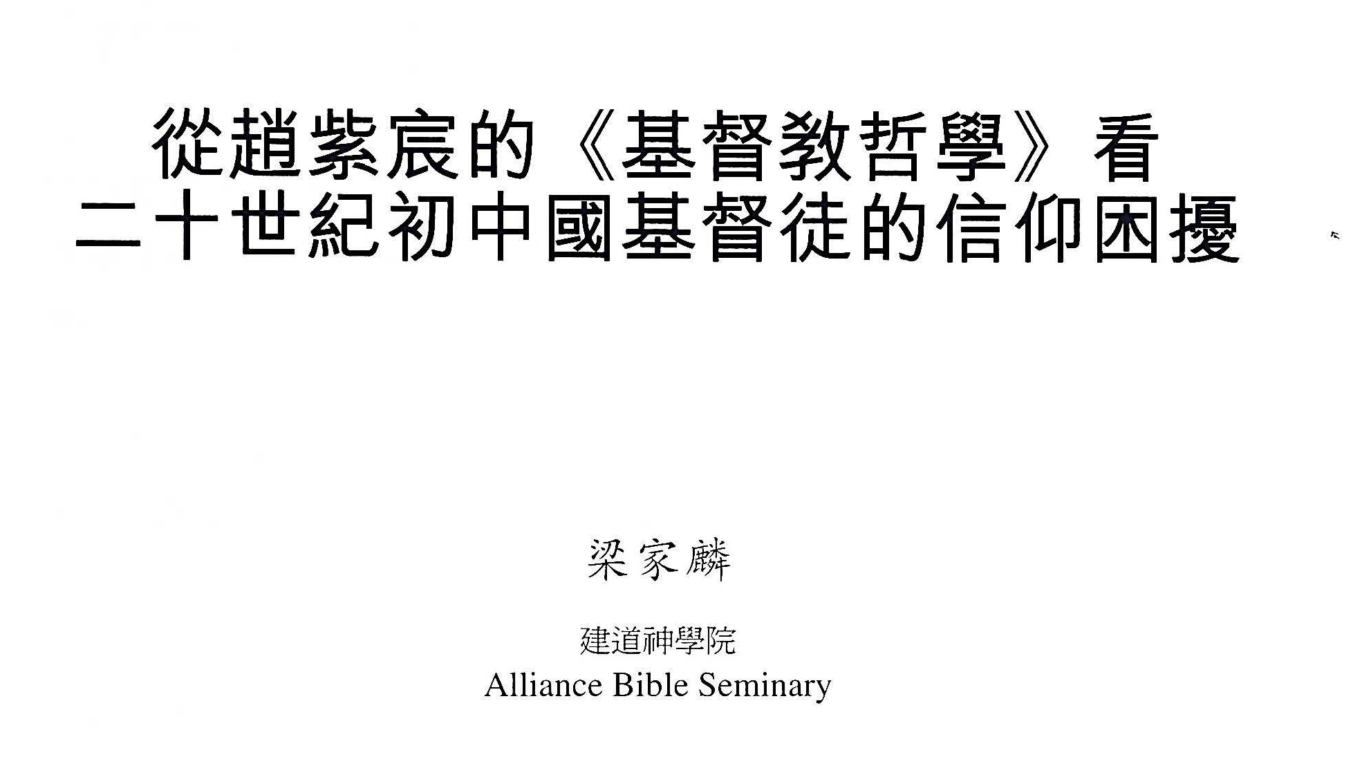 從趙紫宸的《基督教哲學》看二十世初中國基督徒的信仰困擾/梁家麟
