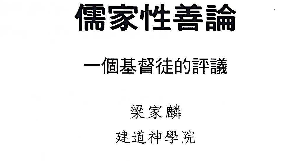 儒家性善論:一個基督徒的評議 / 梁家麟