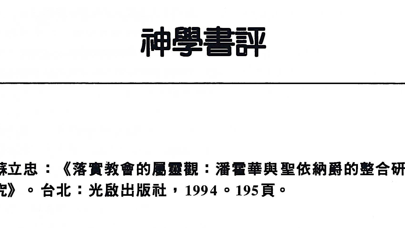 這十餘年來,無論在台灣、香港或中國大陸,都冒起了一批有志從事中國敎會歷史研究的學者,其中他們不少是專修歷史的,能用嚴謹的史學方法來整理及復原中國敎會歷史面貌,王成勉博士便是其中一位。