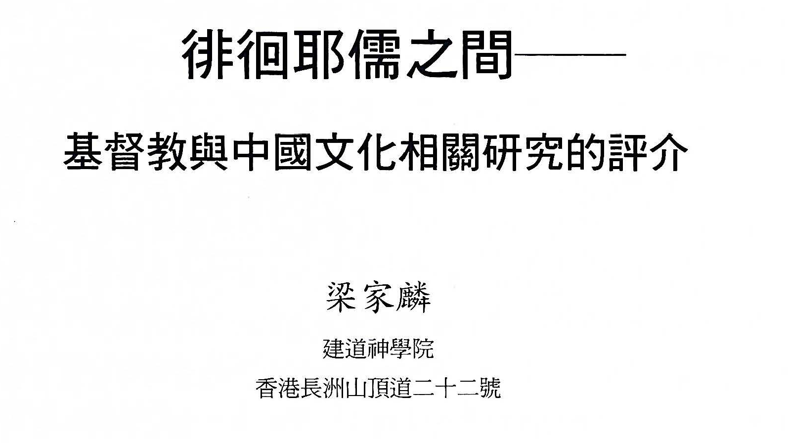 徘徊耶儒之間──基督教與中國文化相關研究的評介 / 梁家麟