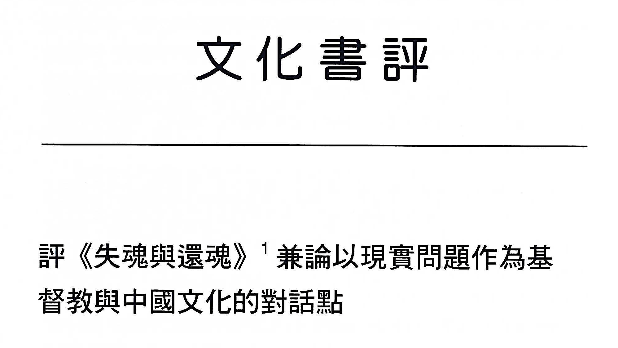 評《失魂與還魂》兼論以現實問題作為基督教與中國文化的對話點 / 梁家麟