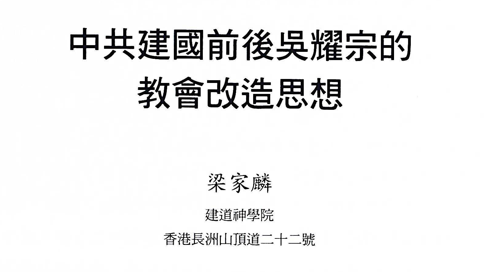 中共建國前後吳耀宗的教會改造思想 / 梁家麟