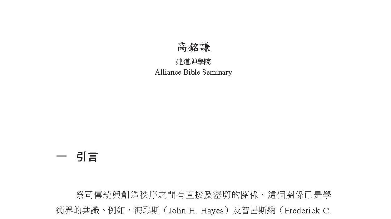 4. 高銘謙。〈祭司的召命:仿照神與創造秩序〉。《建道學刊》。第56期 (2021年7月):3-14。