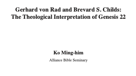 - Ko, Ming Him. “Gerhard von Rad and Brevard S. Childs: The Theological Interpretation of Genesis 22.” Jian Dao 47(Jan 2017): 3-22.