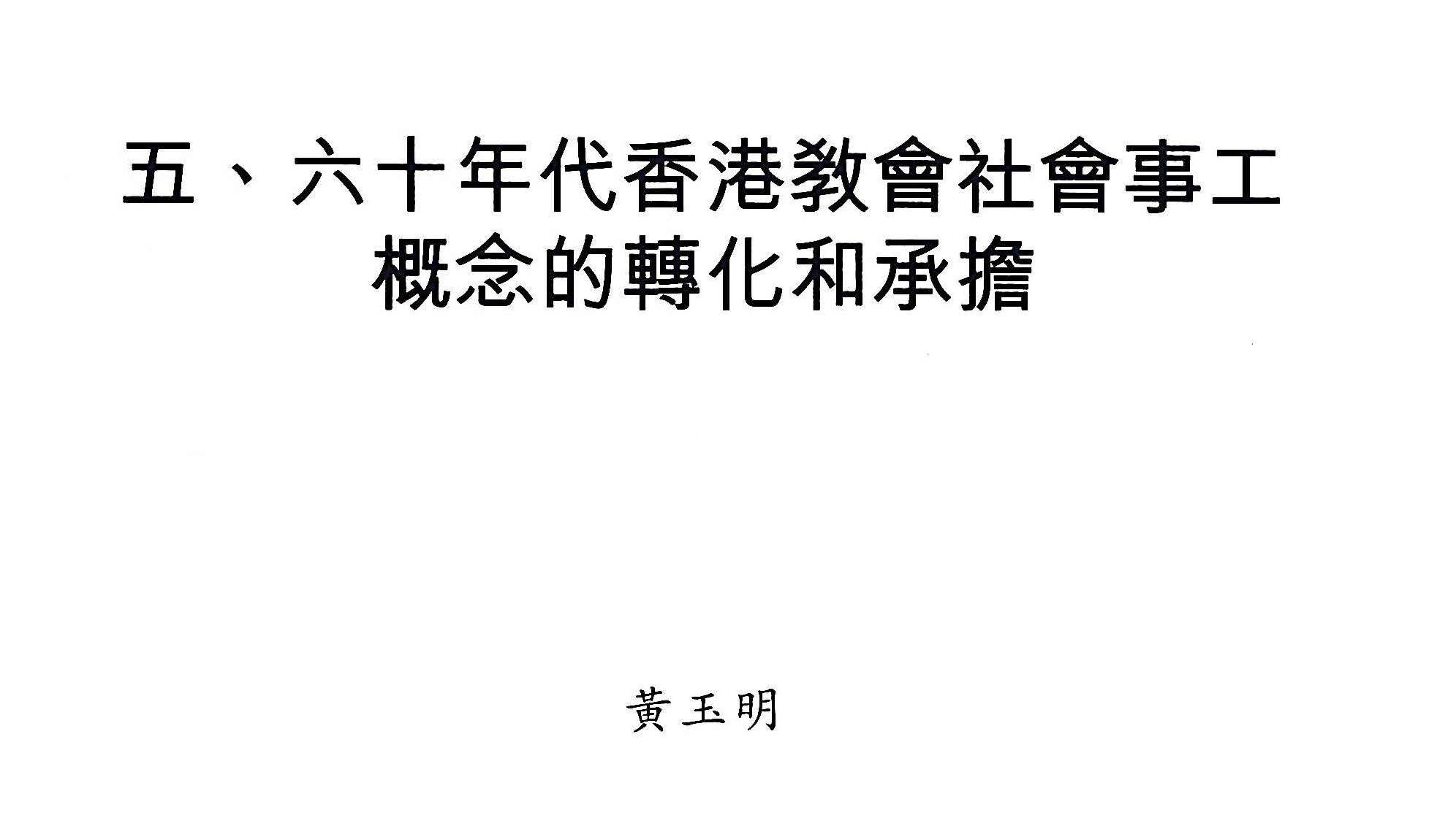 五、六十年代香港教會社會事工概念的轉化和承擔 / 黃玉明