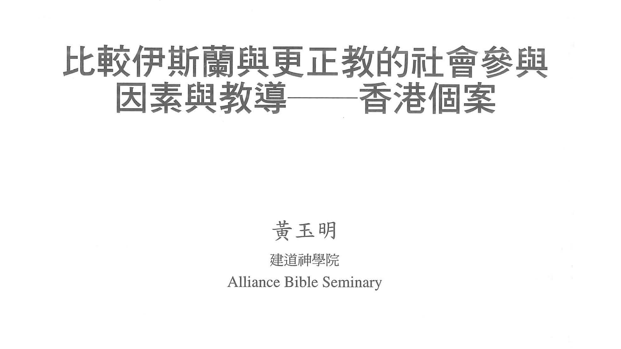 比較伊斯蘭與更正教的社會參與因素與教導──香港個案/黃玉明