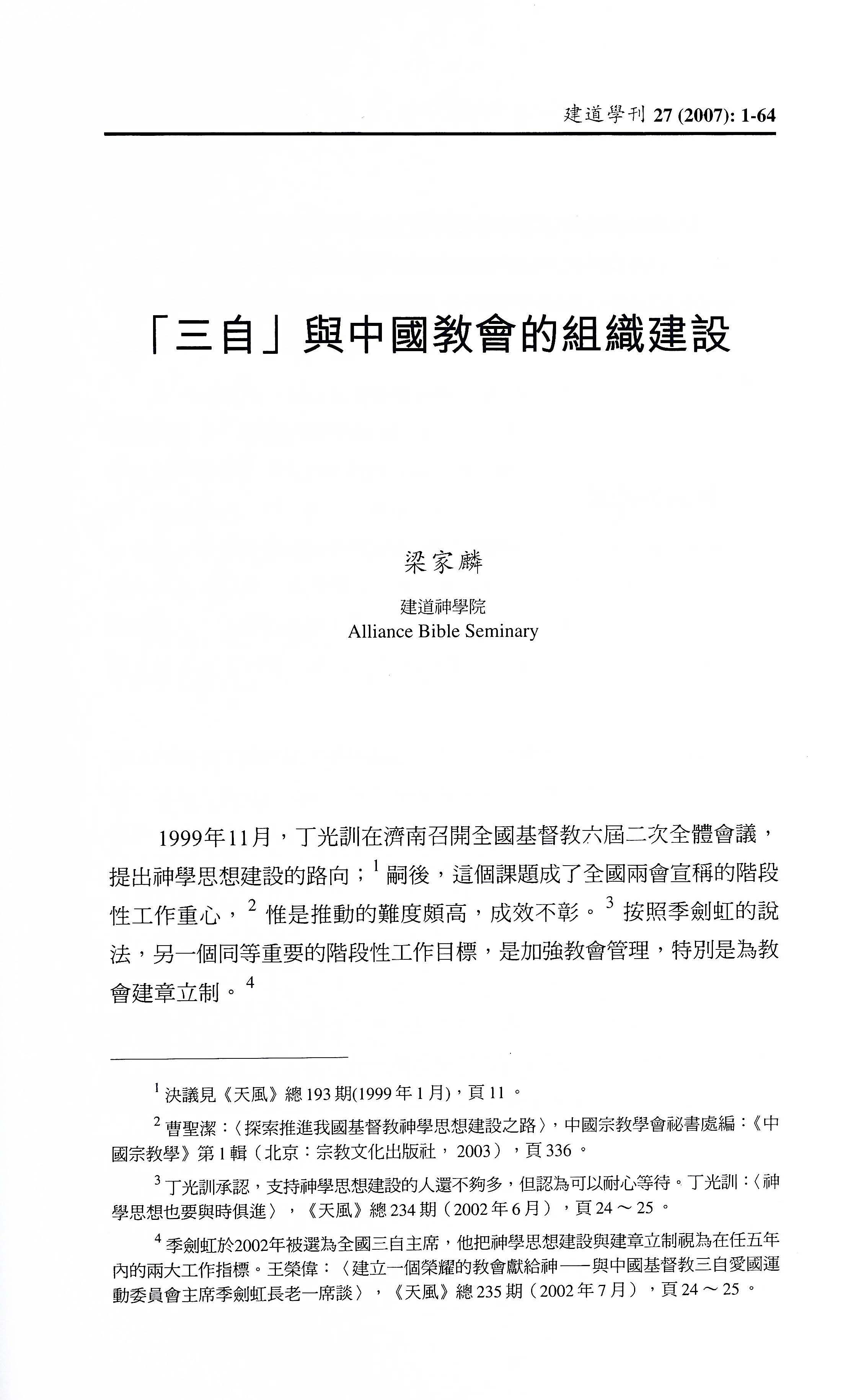 「三自」與中國教會的組織建設 /梁家麟