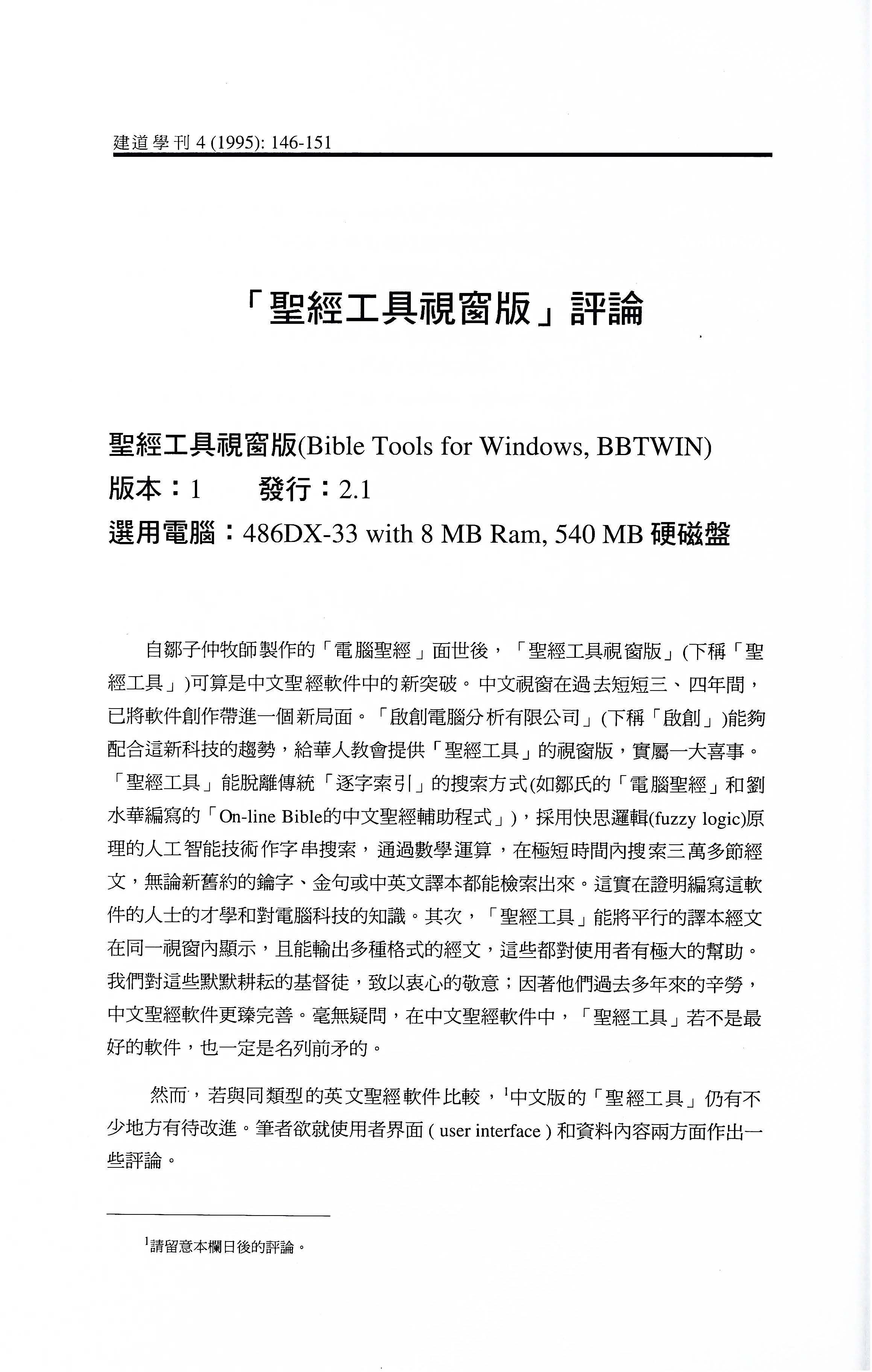 「聖經工具視窗版」評論 / 馮啟榮、黃錫木