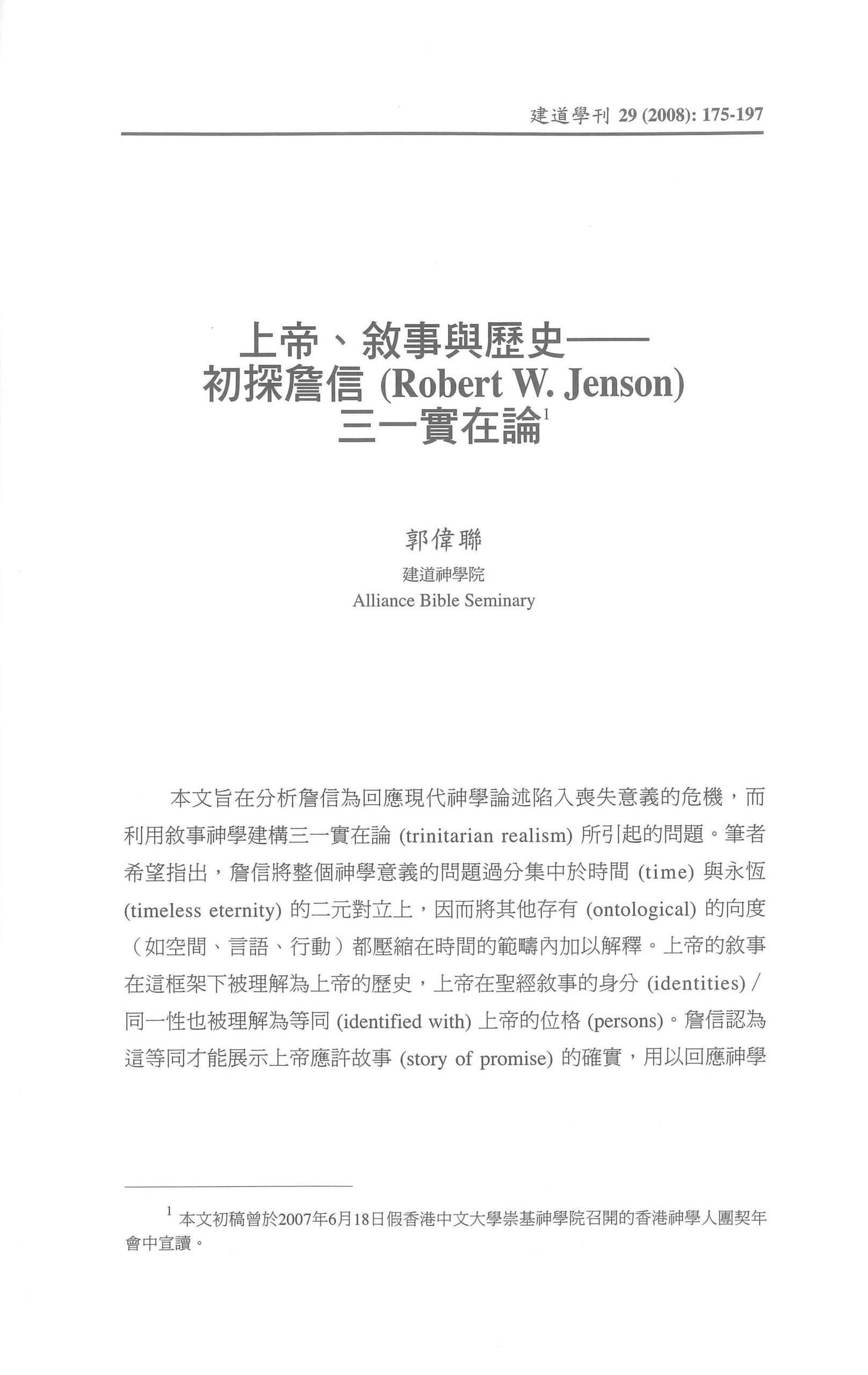 上帝﹑敘事與歷史──初探詹信(Robert W. Jenson)三一實在論/郭偉聯