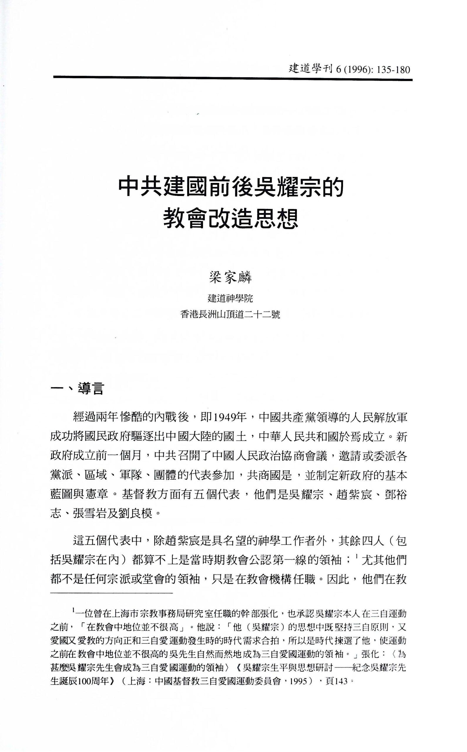 中共建國前後吳耀宗的教會改造思想 / 梁家麟
