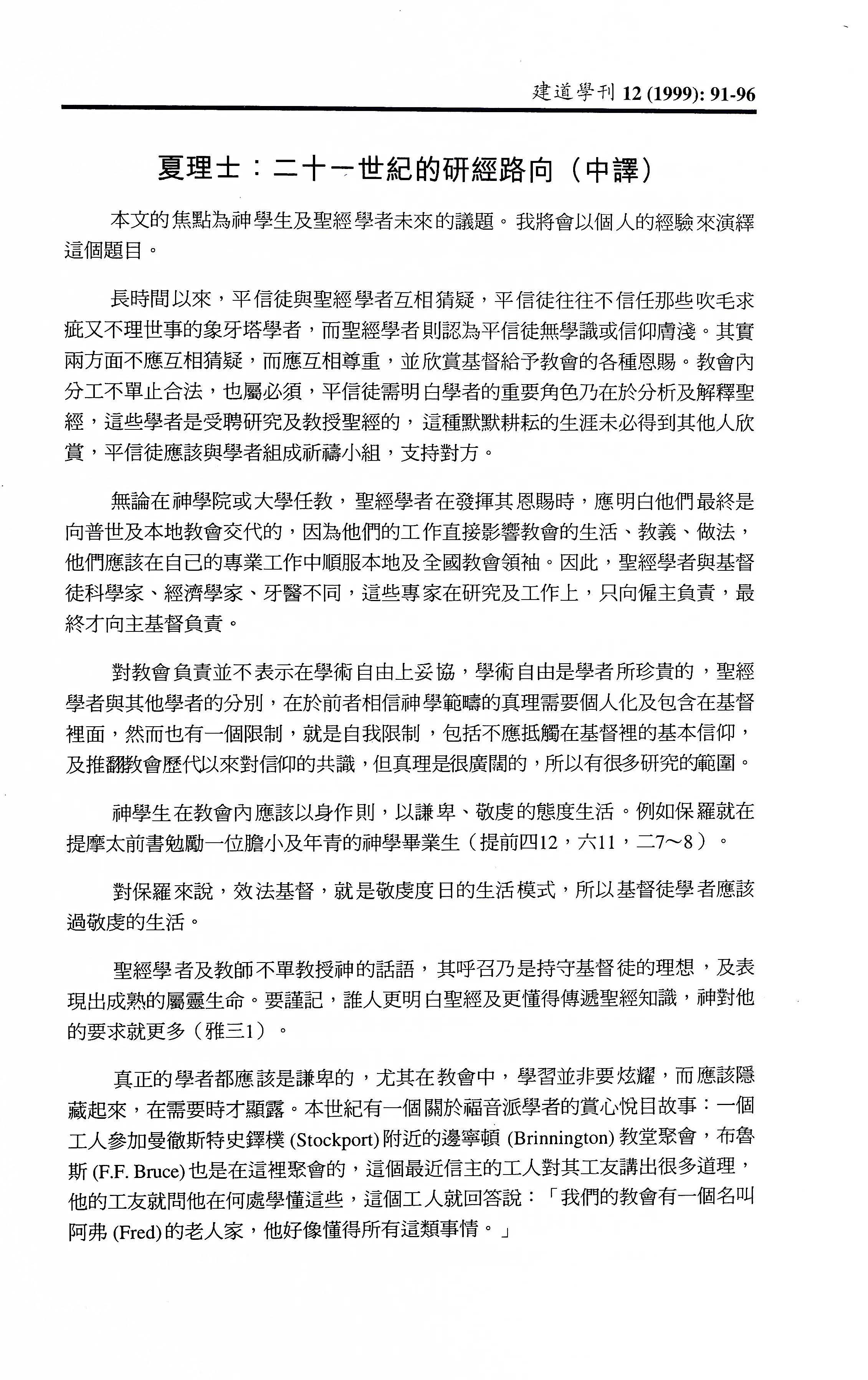 二十一世紀的研經路向(中譯) / 夏理士