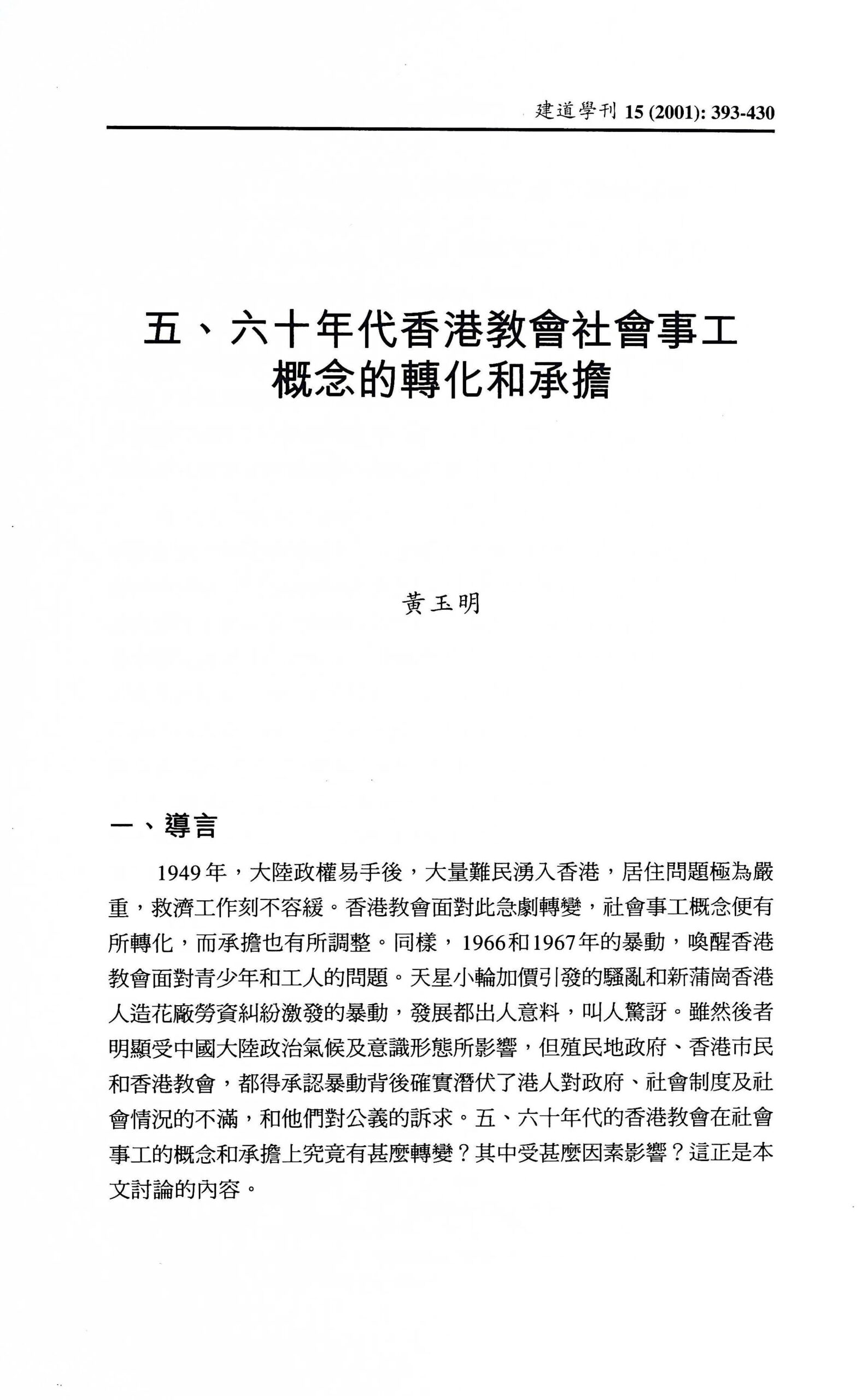 五、六十年代香港教會社會事工概念的轉化和承擔 / 黃玉明