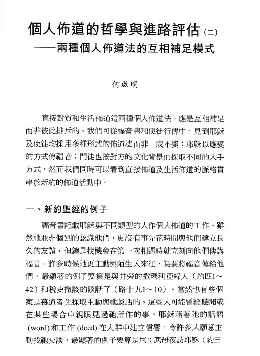 個人佈道的哲學與進路評估(二):兩種個人佈道法的互相補足模式/何啟明