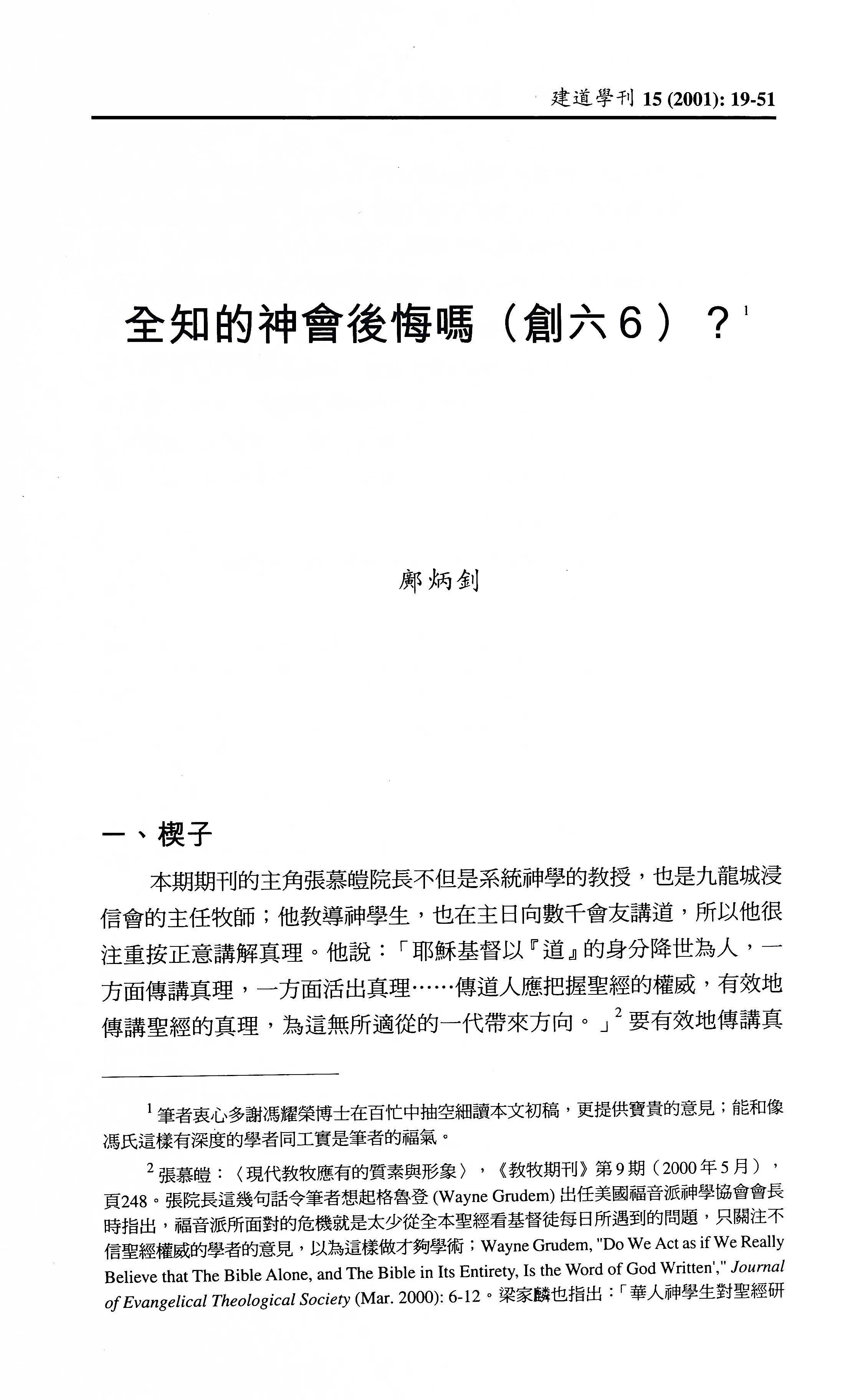 原載於《建道學刊》15期(2001年1月),頁19-51。
