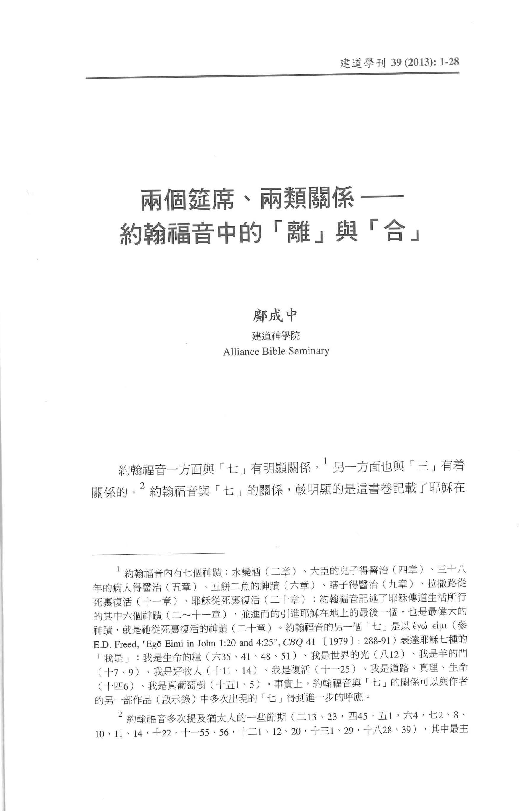 兩個筵席、兩類關係—約翰福音的「離」與「合」/鄺成中