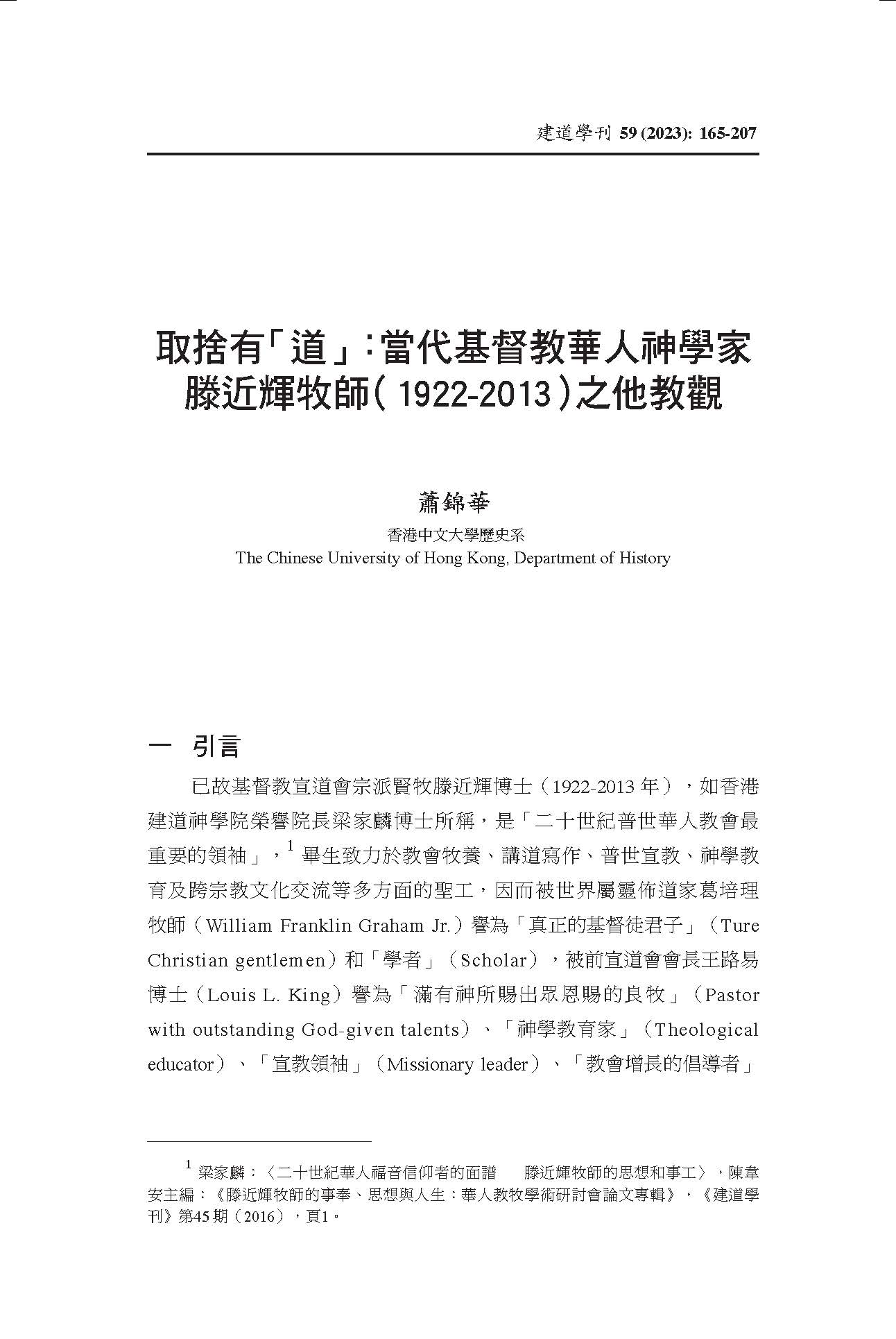 取捨有「道」——當代基督教華人神學家滕近輝牧師(1922-2013)之他教觀/蕭錦華