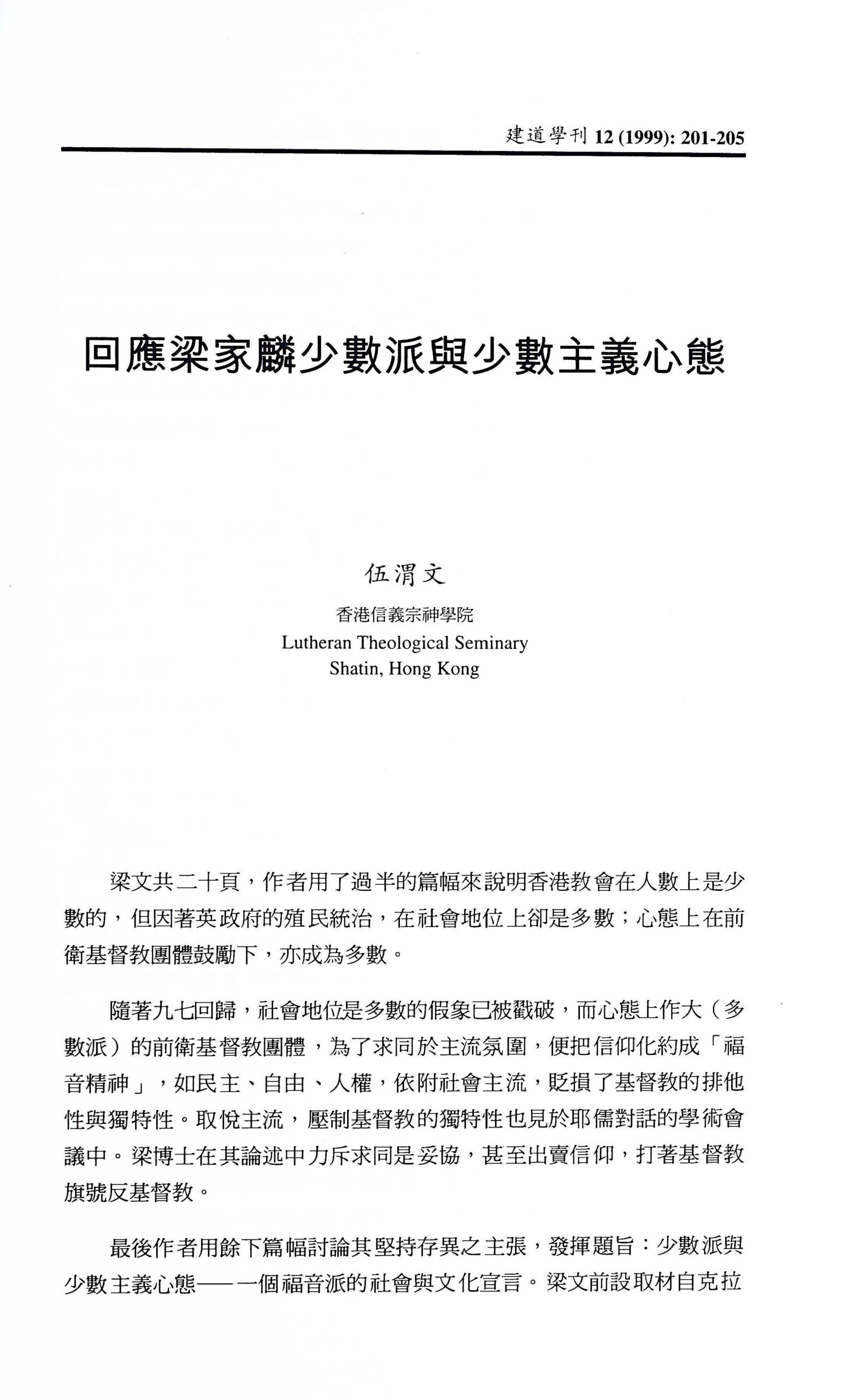 回應梁家麟少數派與少數主義心態 / 伍渭文