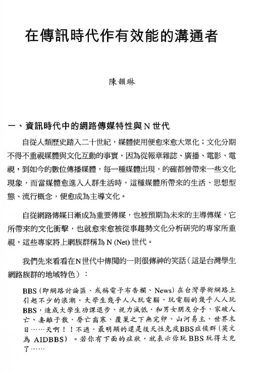 自從人類歷史踏入二十世紀,媒體使用便愈來愈大眾化;不得不重視媒體與文化互動的事實。本文先探討資訊時代中的網路傳媒特性與N (Net)世代,及網路傳媒會如此被重視的原因。從四方面分析網路傳媒與後現代文化的關係:1. 反中心性、零散、邊緣化的後現代性與資訊爆炸;2. 文本詮釋、對話的後現代性;3. 語言嬉戲、斷裂性文字的後現代性;4. 虚擬真實、真實虚擬的後現代性。再提出網路傳媒、N世代對敎會的五項挑戰:1. 承認網路身分的「真實性」;2. 親疏關係的重新定義;3. 從大量資料資訊中溫醸知識與智慧;4. 敎會意見在網路傳媒上的影響力不可能太大;5. 在意見多元、徹底相對化的環境中如何傳福音?並如何跟進?最後是作者個人在網路傳媒與福音工作的經驗分享。