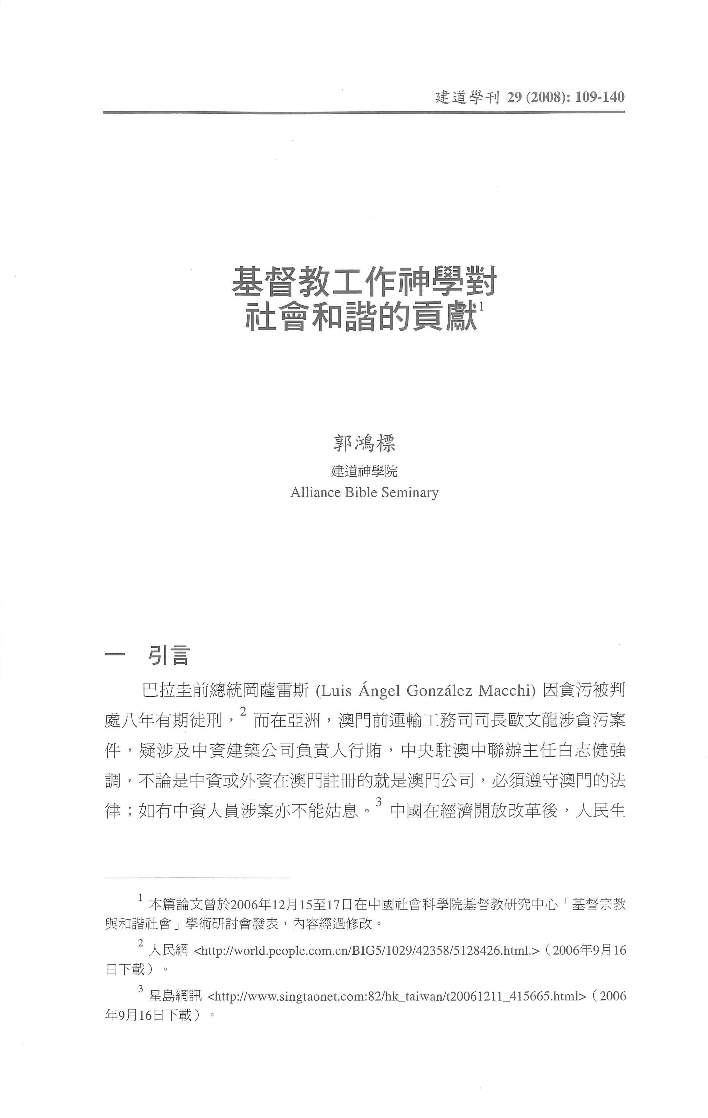 基督教工作神學對社會和諧的貢獻/郭鴻標