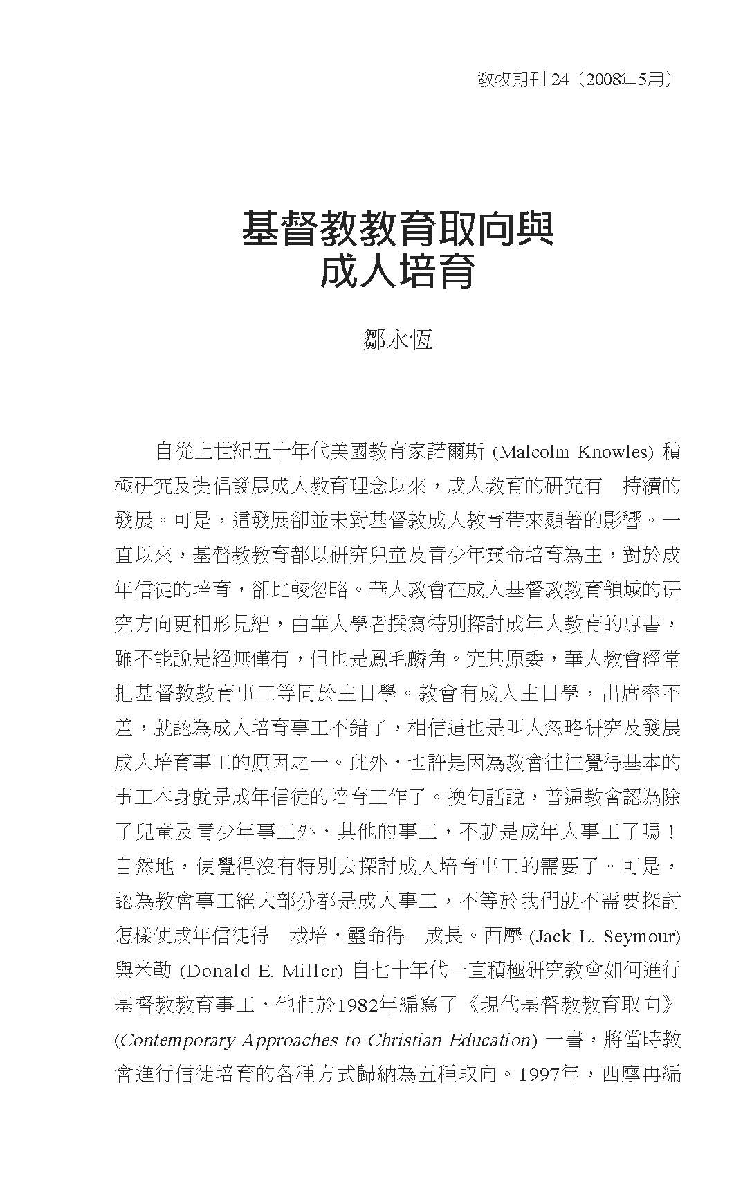 基督教教育取向與成人培育/鄒永恆