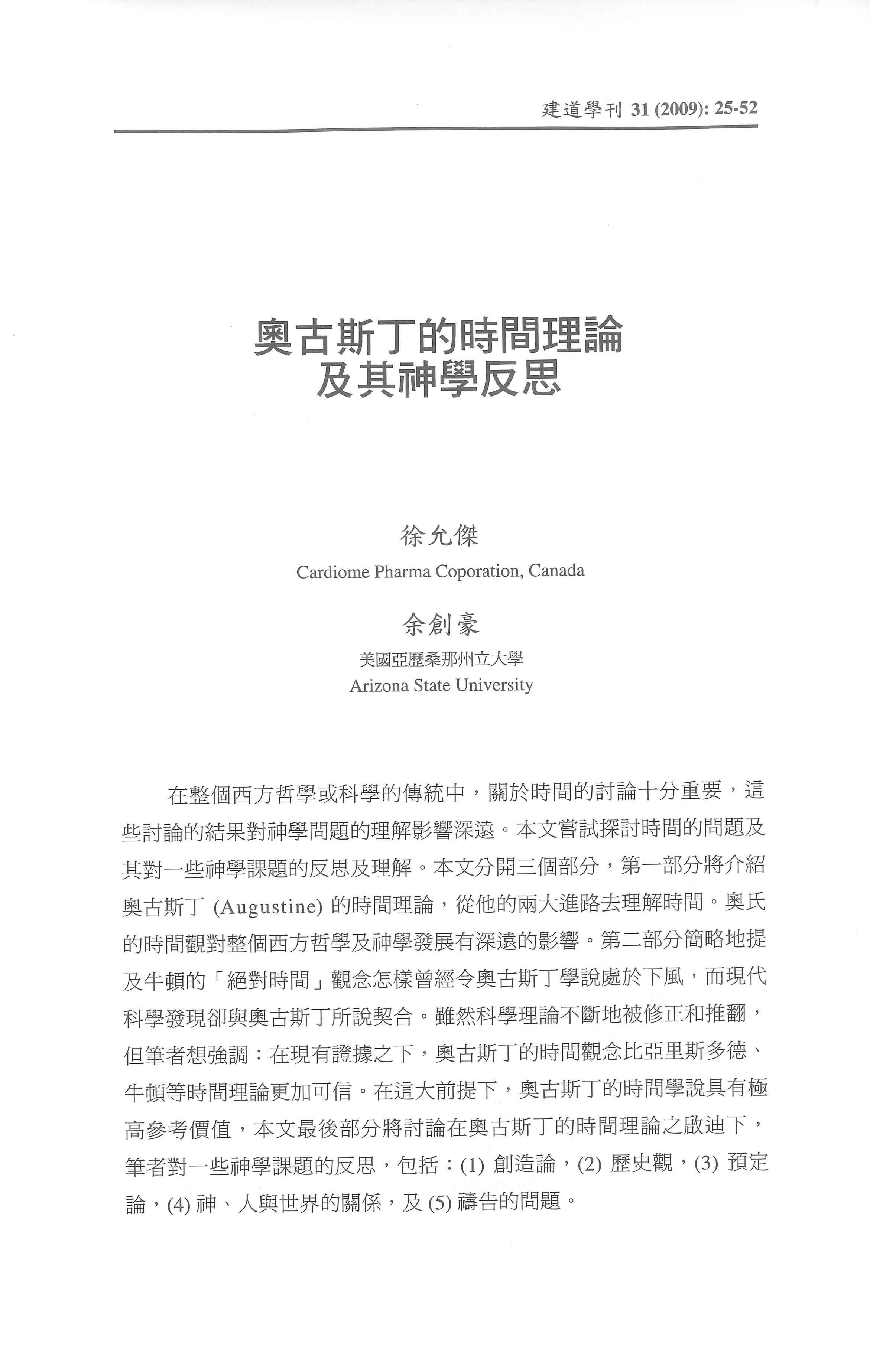 奧古斯丁的時間理論及其神學反思/徐允傑、余創豪