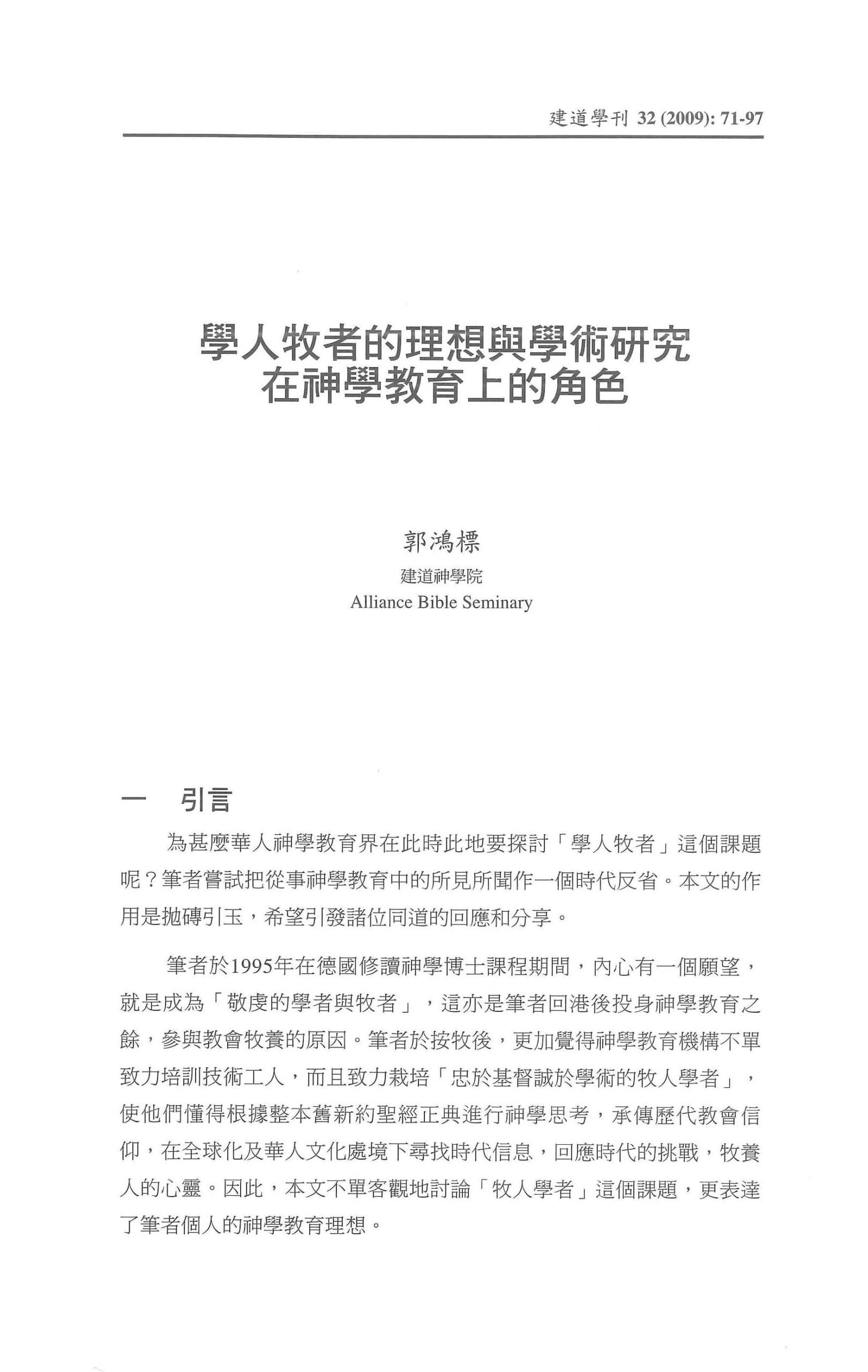 學人牧者的理想與學術研究在神學教育上的角色/郭鴻標