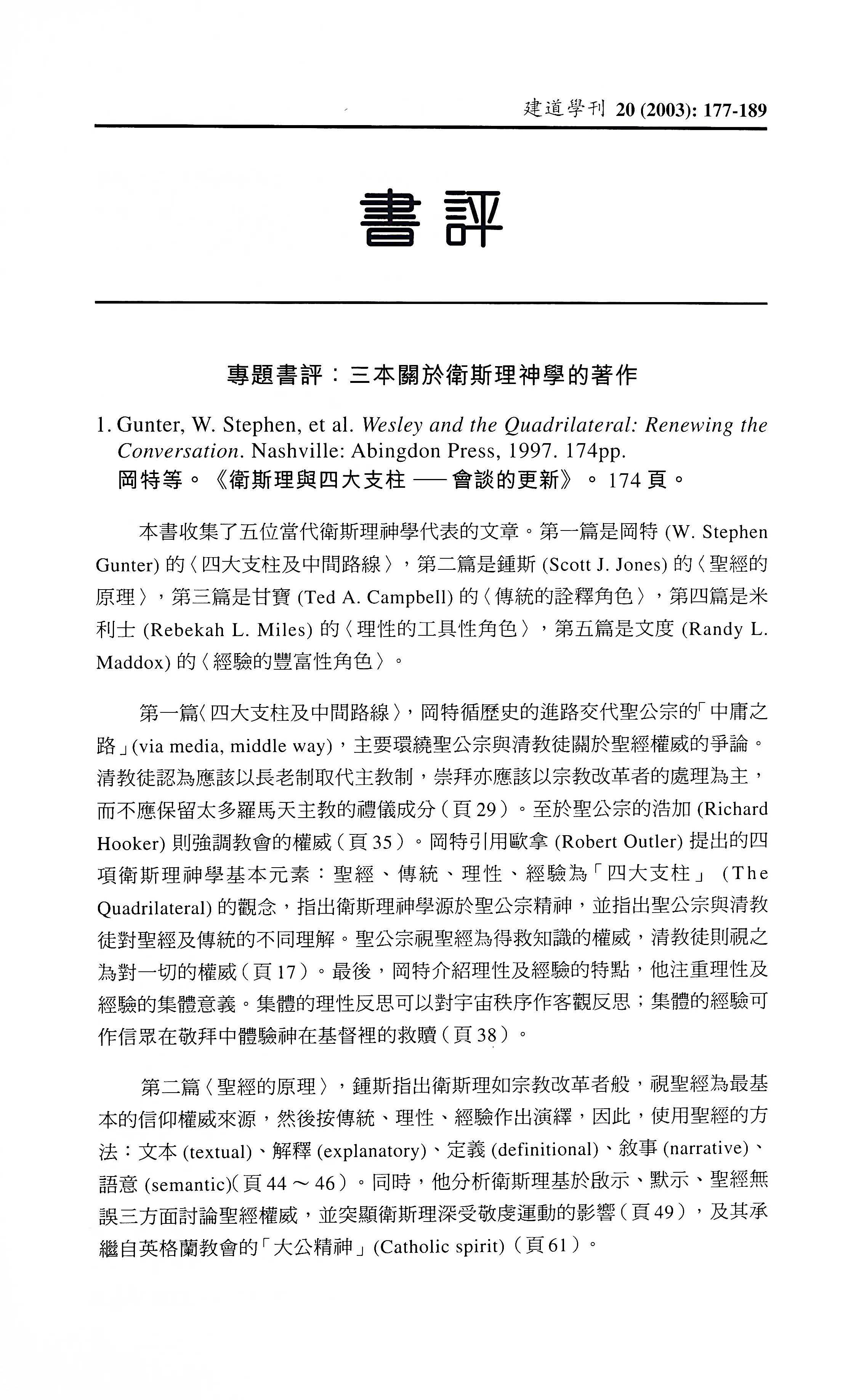 原載於《建道學刊》20期(2003年7月),頁177-178。