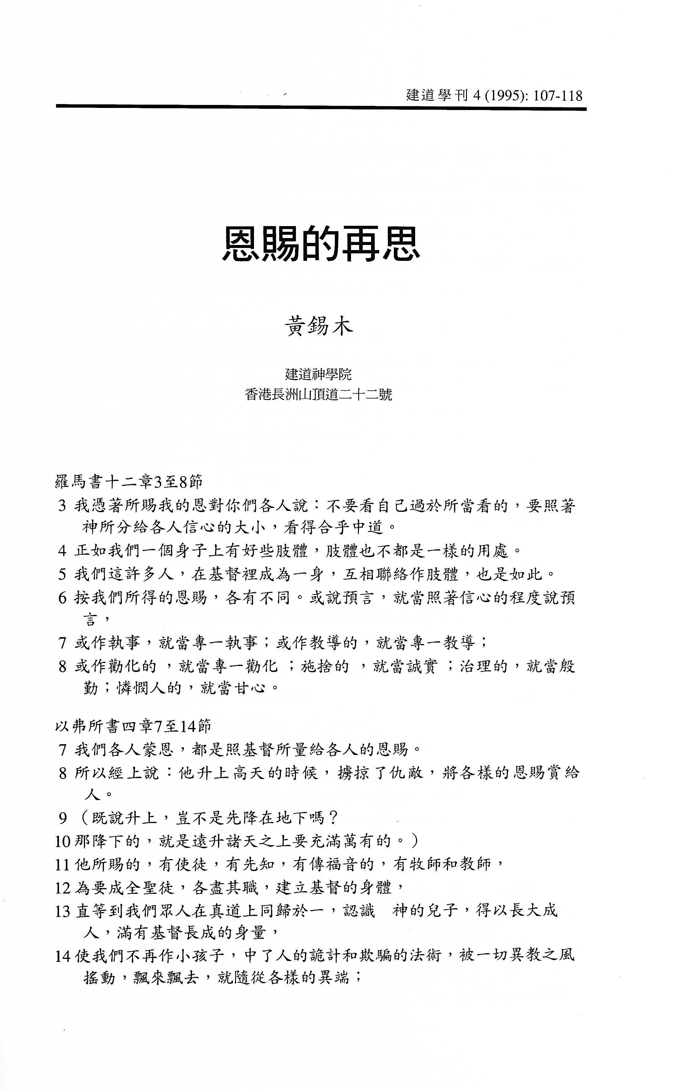 原載於《建道學刊》4期(1995年7月),頁107-118。