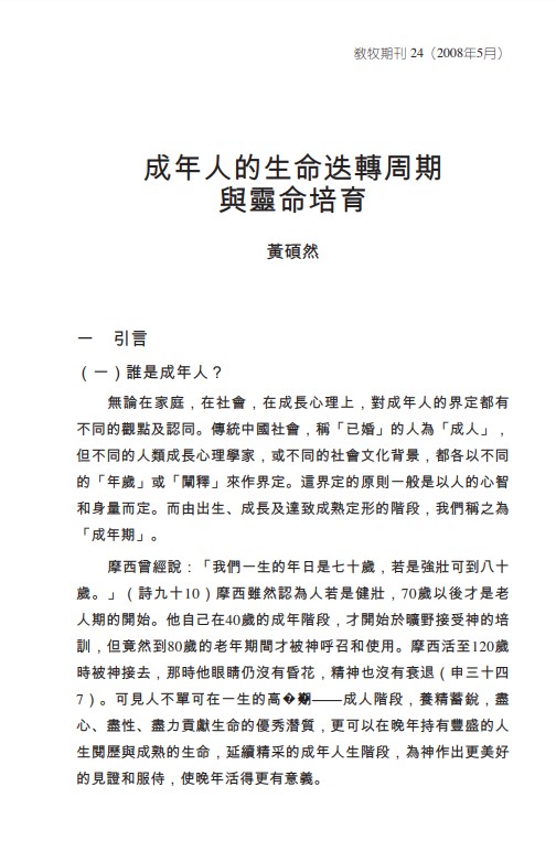 成年人的生命迭轉周期與靈命培育/黃碩然