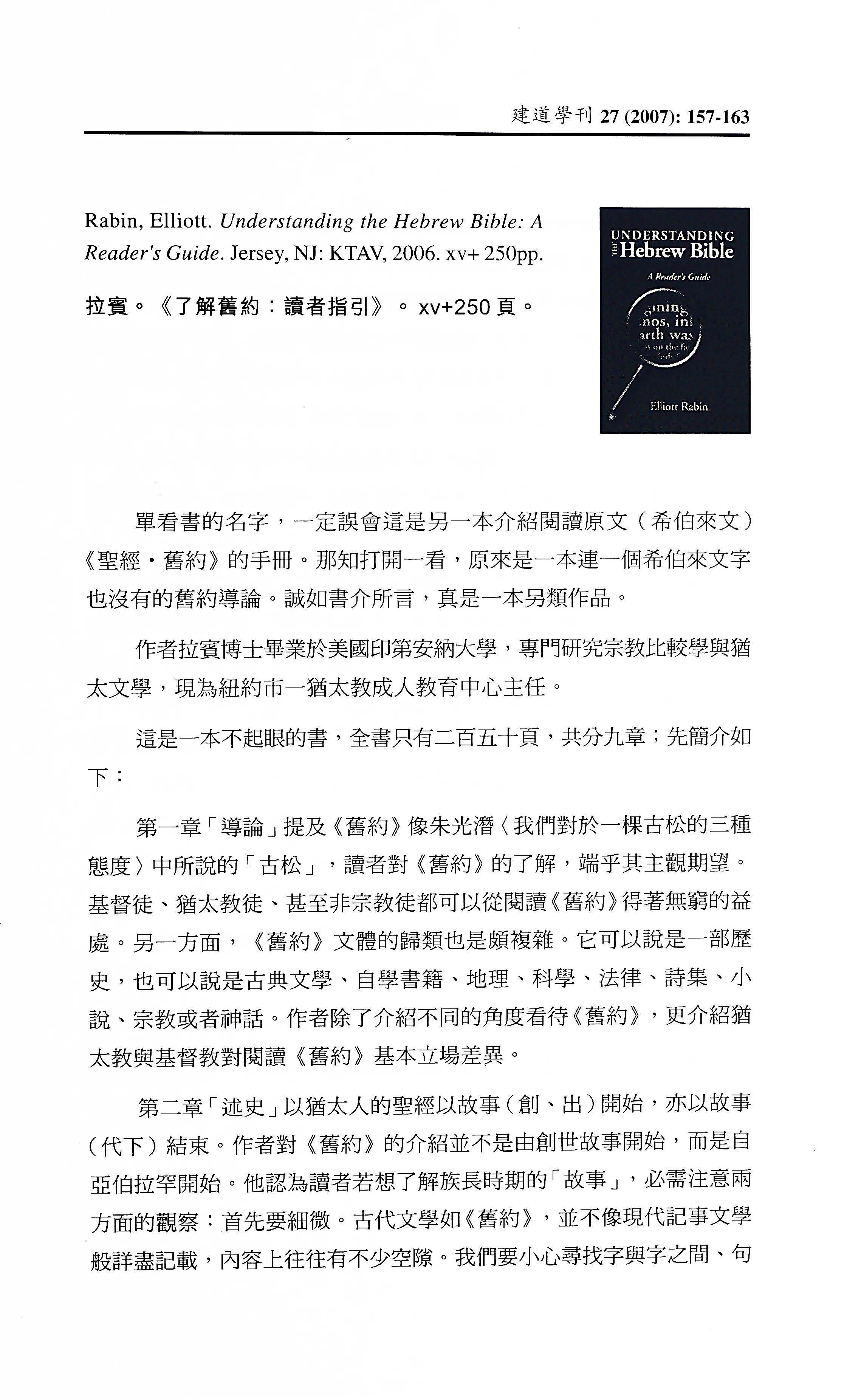 拉賓。《了解舊約:讀者指引》(Rabin, Elliott. Understanding The Hebrew Bible: A Reader's Guide.)/甘汝誠