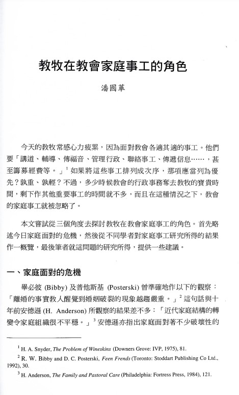 教牧在教會家庭事工的角色/潘國華