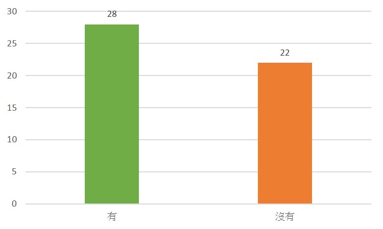 雖然上圖反映大多數牧者在初期牧會階段傾向於穩定在同一工場服侍,但下圖顯示當中有28位受訪者表示離職/曾經想過離職,即有超過一半人想過離職。