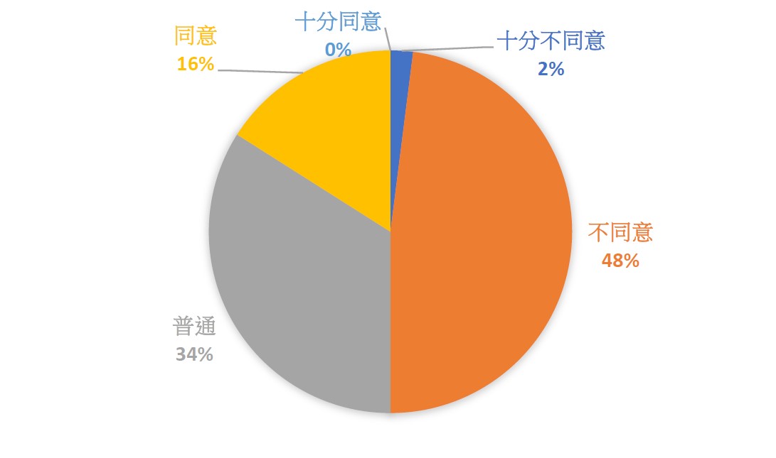 圖十五顯示了新手牧者「認為自己有足夠的知識應付和面對事奉上的需要」這項回應的調查結果。從數據來看,有高達48%的受訪者「不同意」自己有足夠的知識應付和面對事奉上的需要,另有2%表示「十分不同意」。這意味著半數的受訪者認為自己在知識準備方面存在不足。相比之下,只有16%的受訪者「同意」自己知識充足,而「十分同意」的比例為0%。有34%的受訪者對此持「普通」態度。