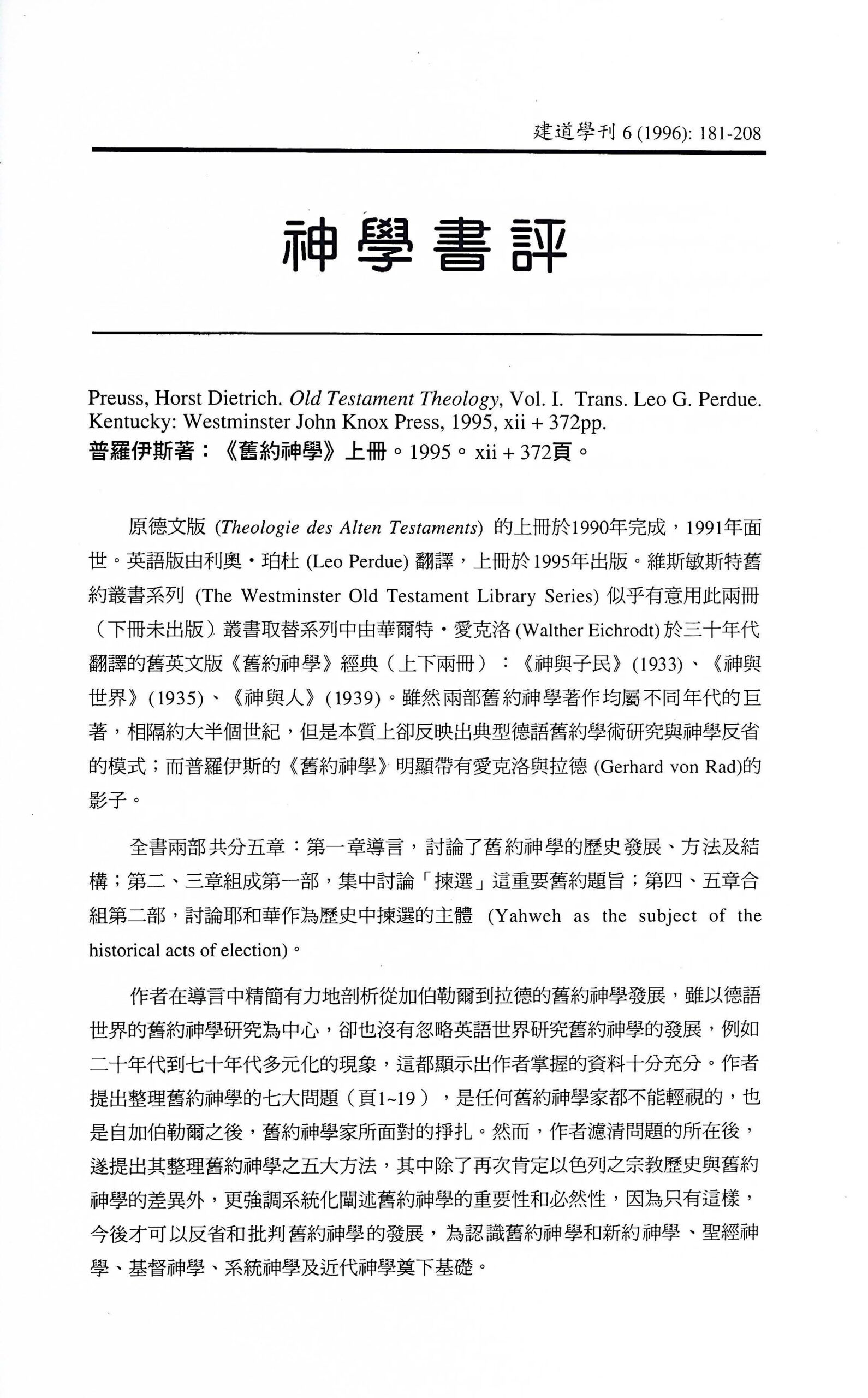 原載於《建道學刊》6期(1996年7月),頁181-182。