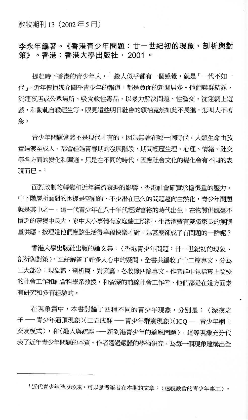 書介:《香港青少年問題:廿一世紀初的現象、剖析與對策》/呂焯安