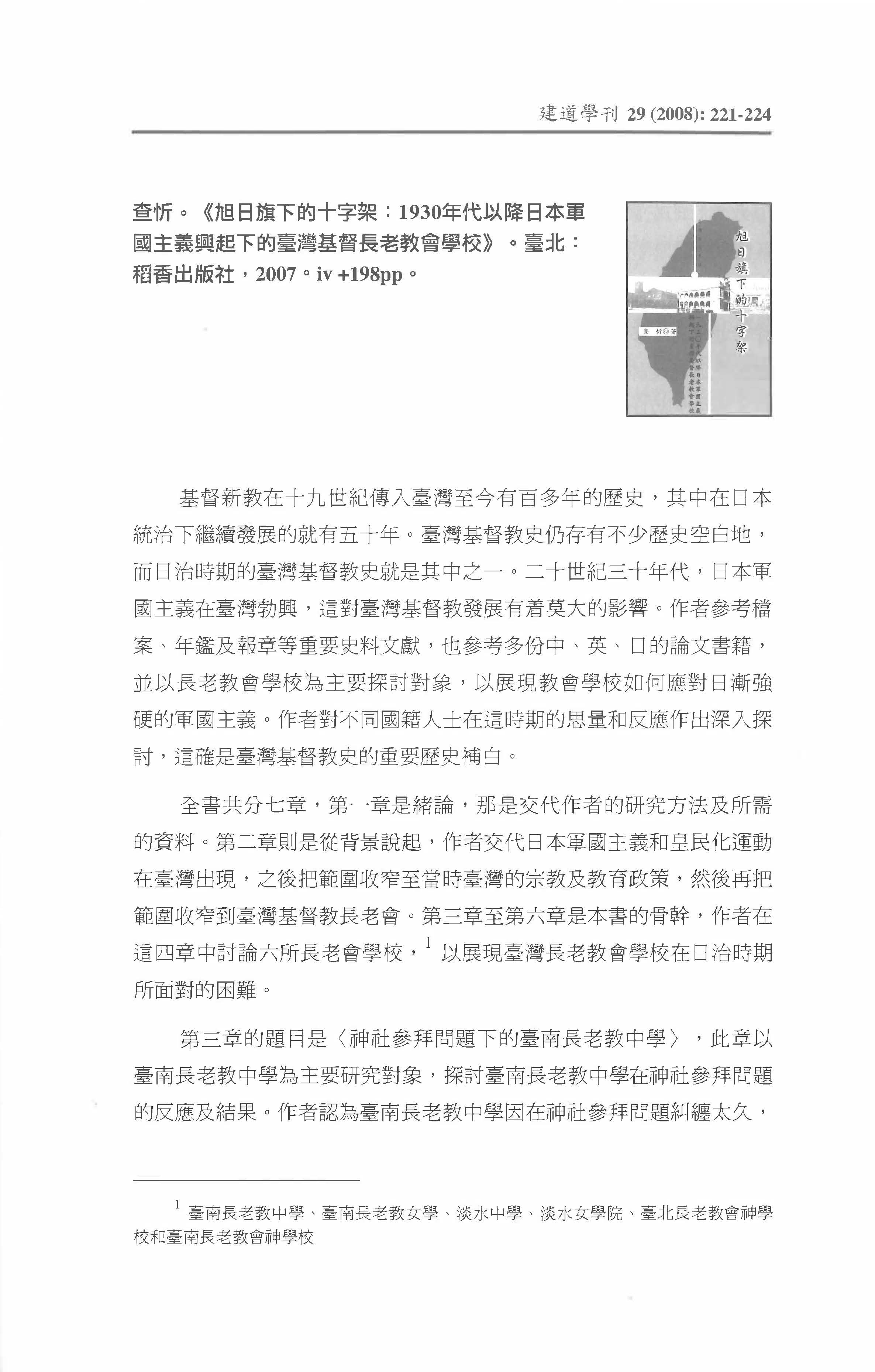 查忻。《旭日旗下的十字架:1930年代以降日本軍國主義興起下的臺灣基督長老教會學校》/陳智衡