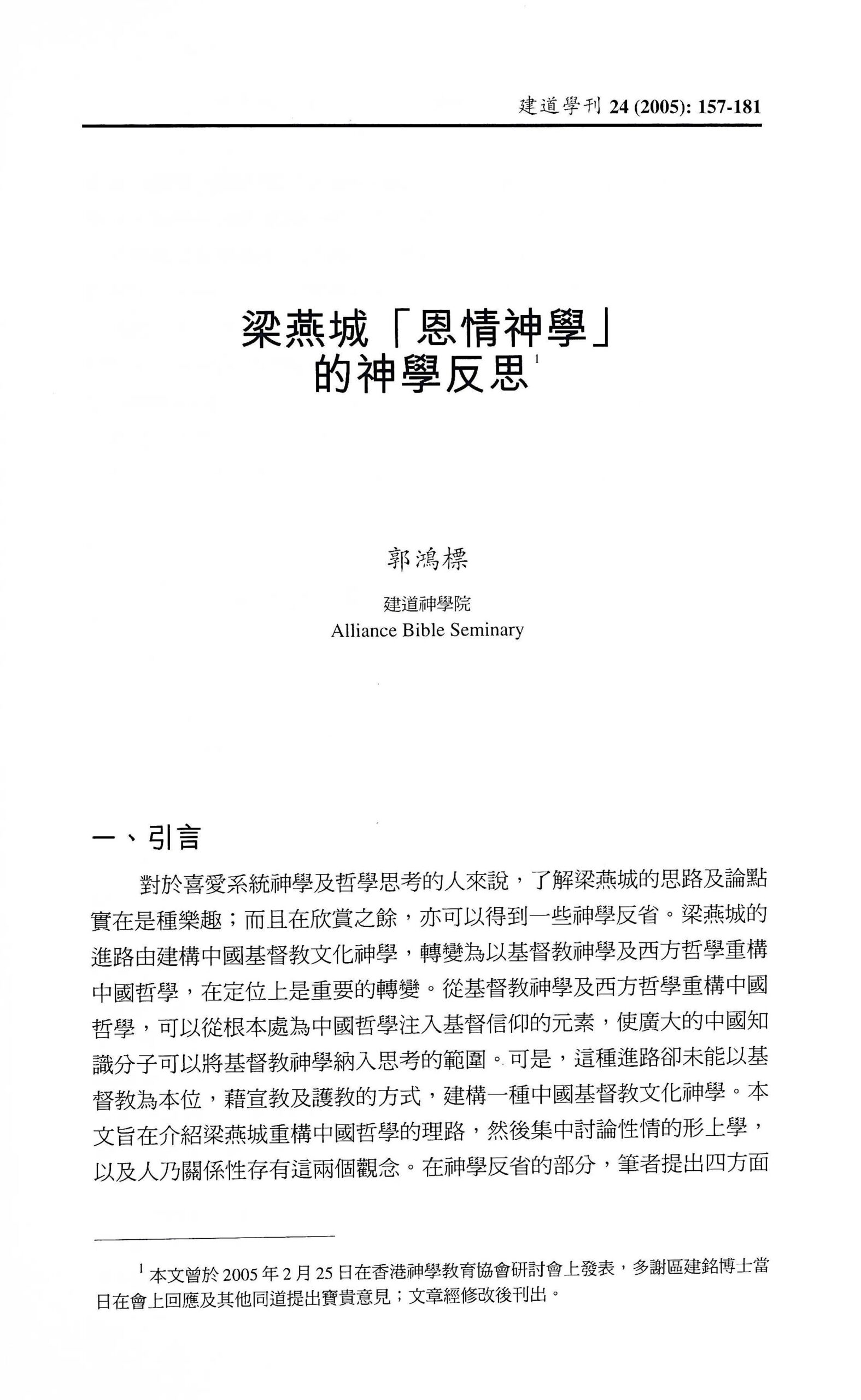 梁燕城「恩情神學」的神學反思/郭鴻標