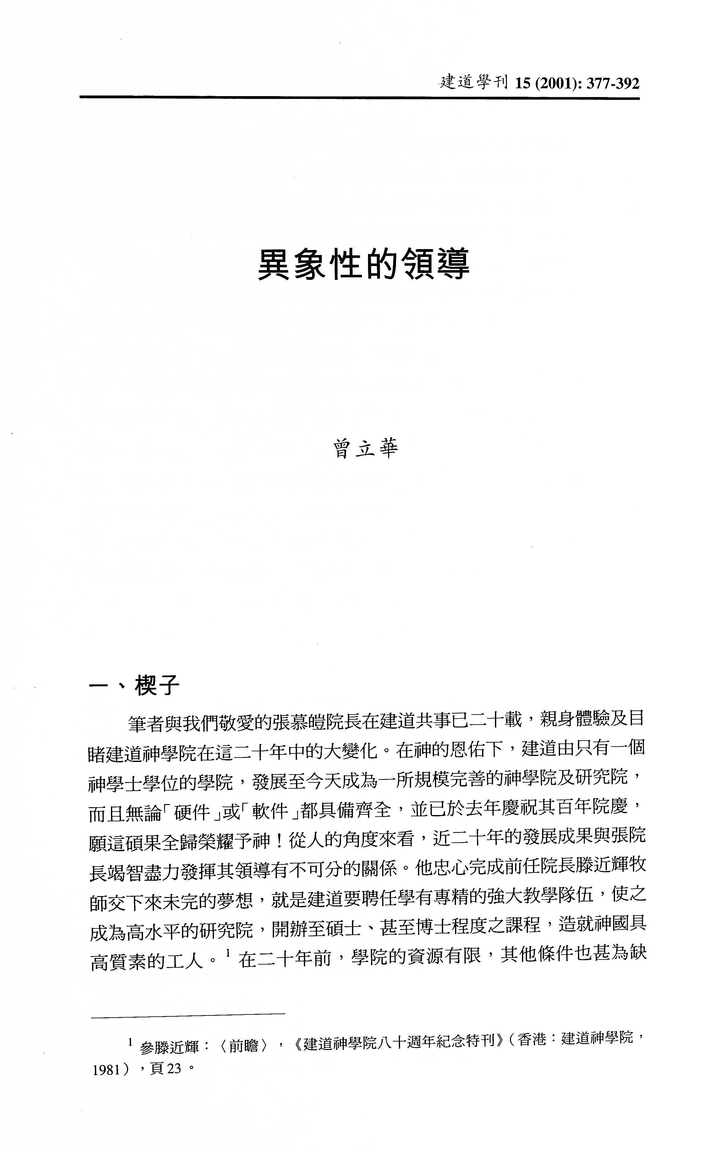 原載於《建道學刊》15期(2001),頁377-392。