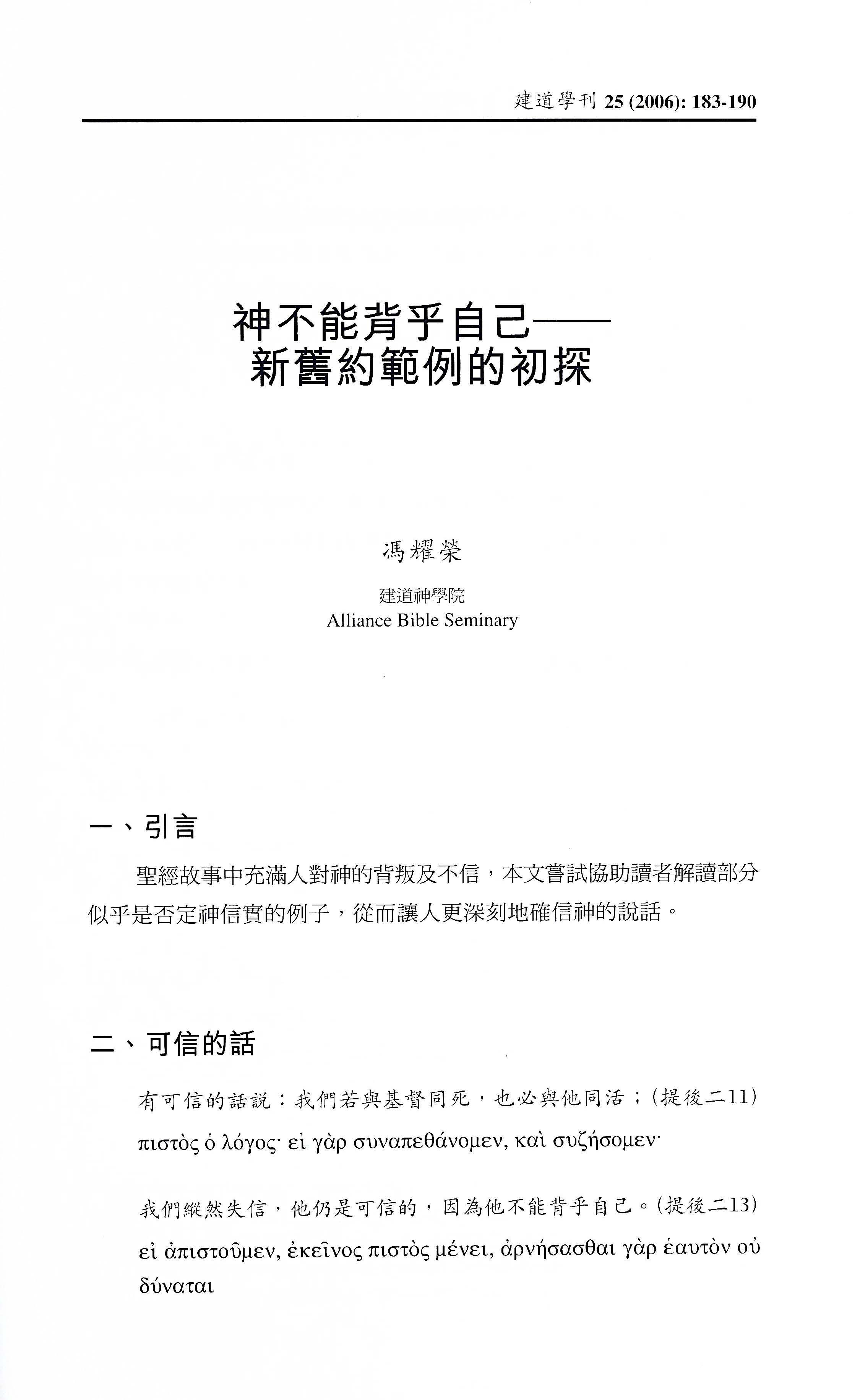 原載於《建道學刊》25期(2006年1月),頁183-190。
