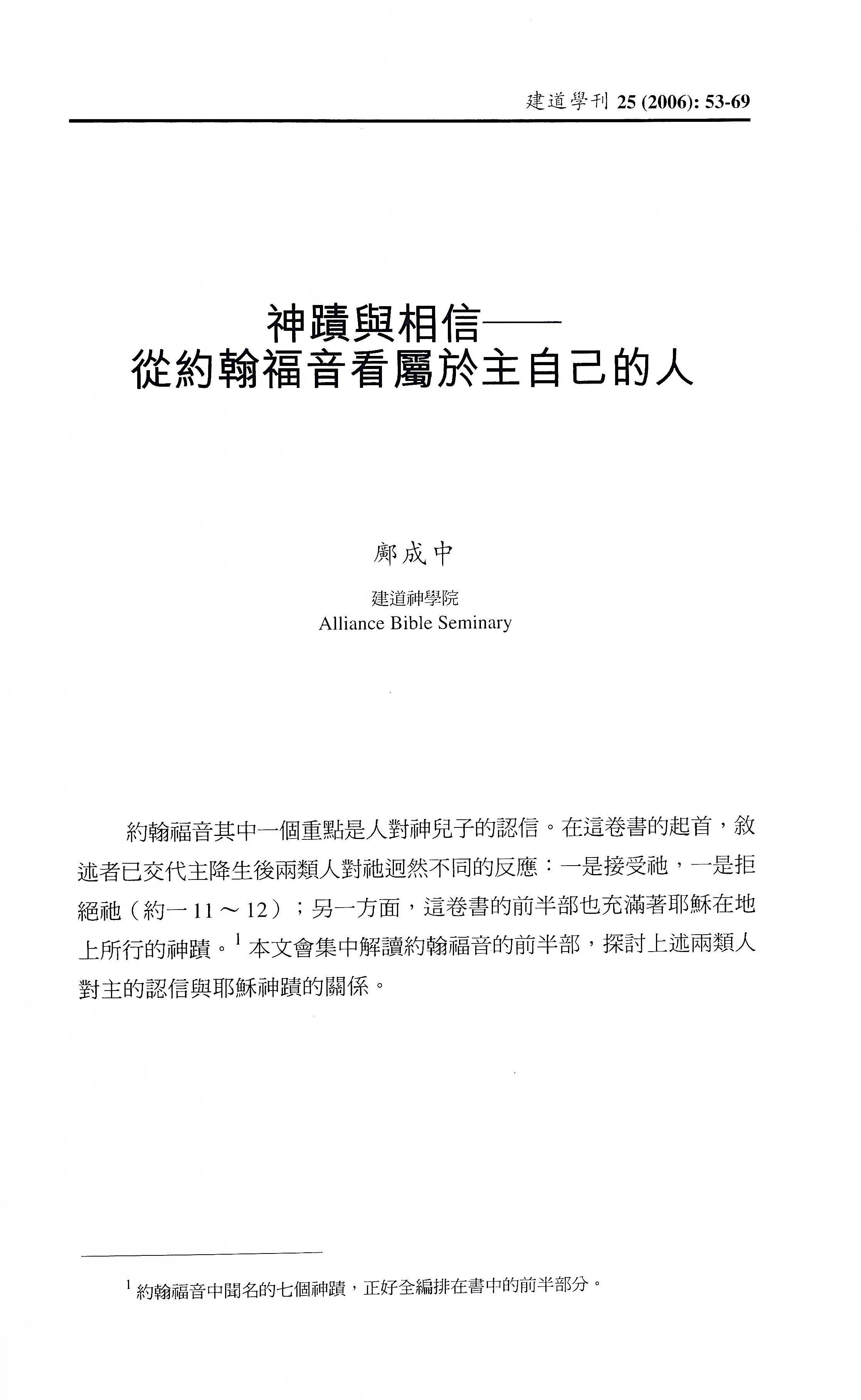 神蹟與相信──從約翰福音看屬於主自己的人/鄺成中