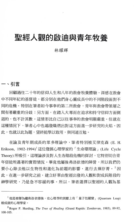 聖經人觀的啟迪與青年牧養/林耀輝