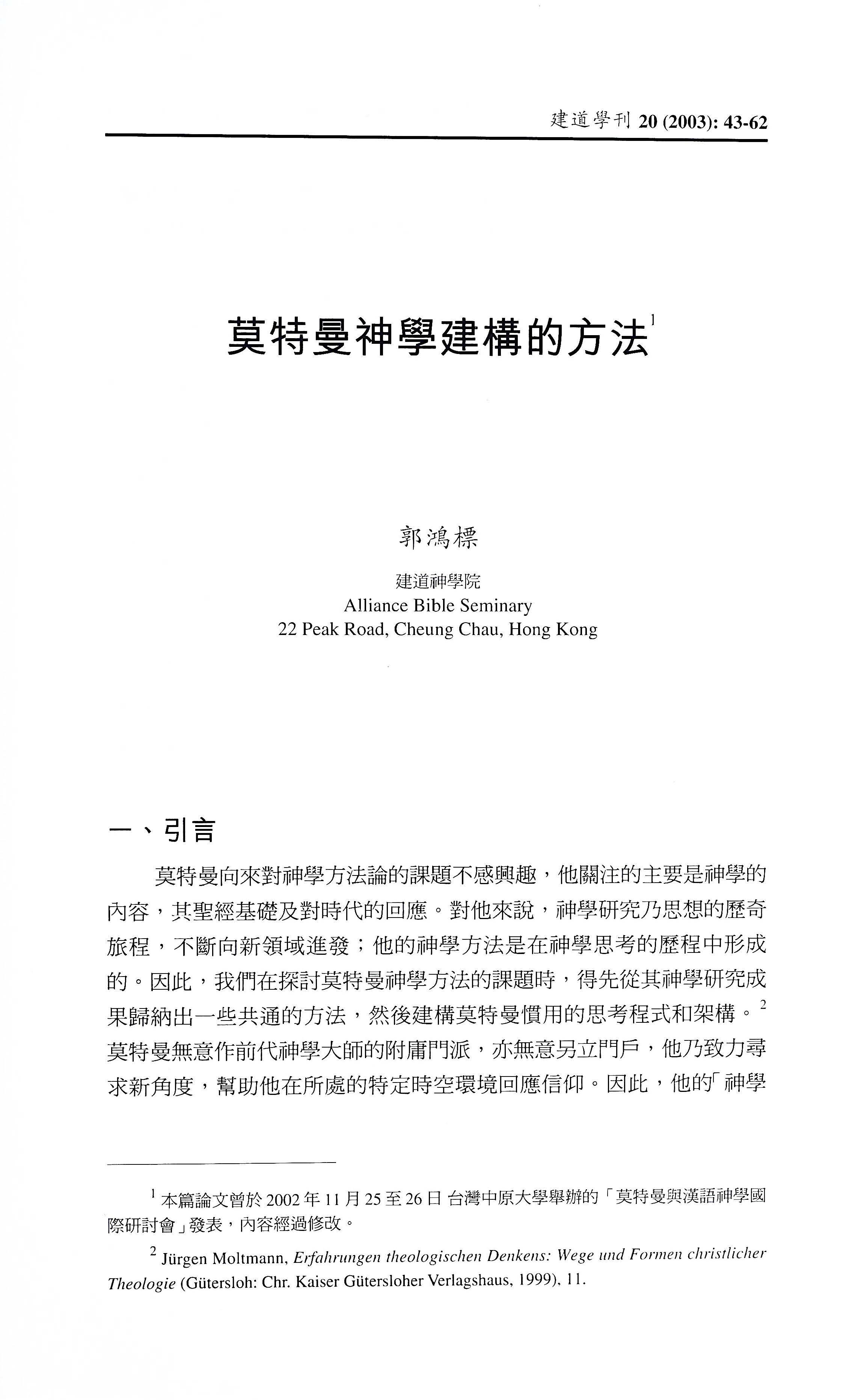 原載於《建道學刊》20期(2003年7月),頁43-62。