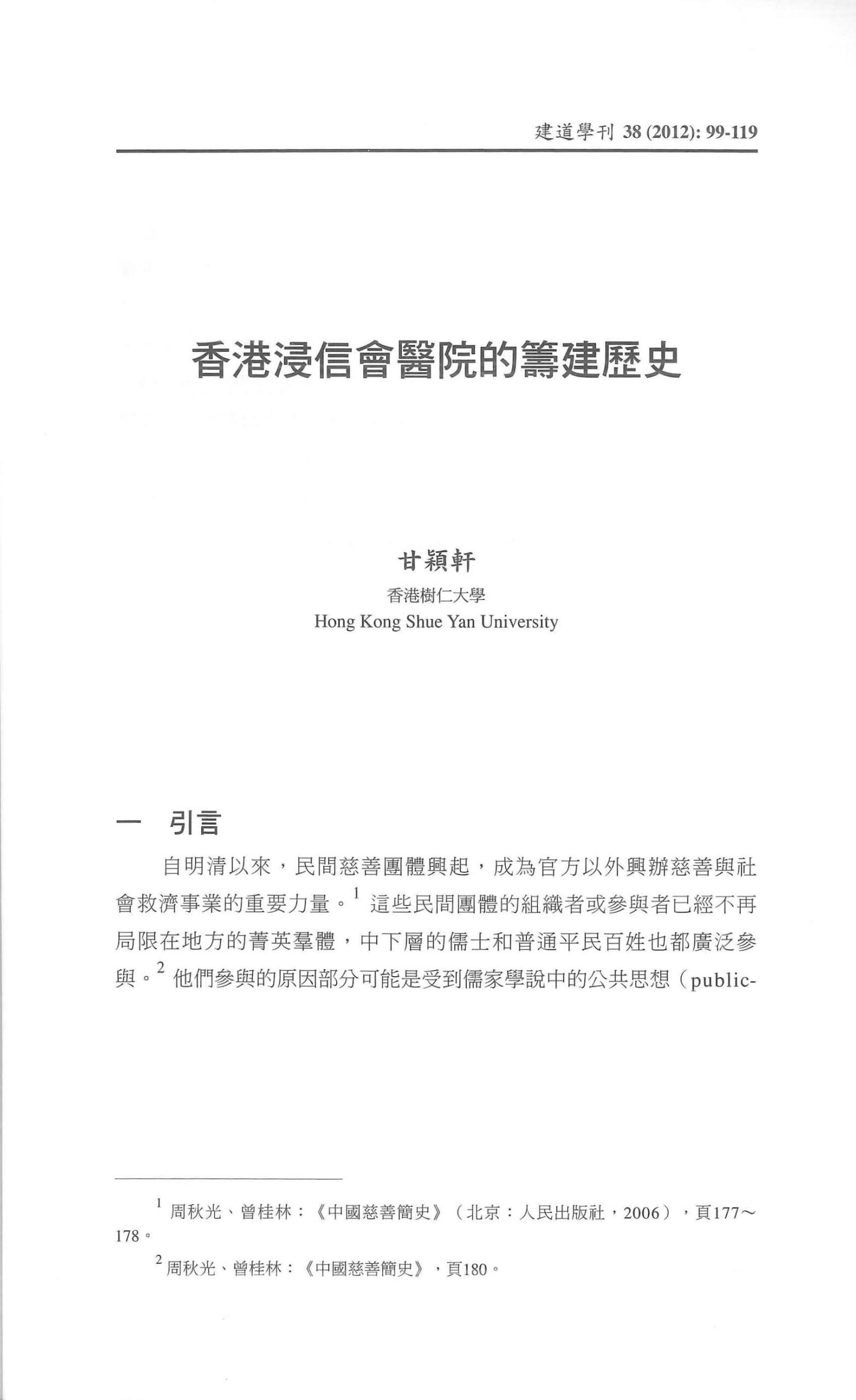 第二次世界大戰後,香港浸信會聯會延續浸會教派在華百多來醫務傳道的傳統,在1956年建立香港浸信會醫療所,並於1963年將其擴充成為香港浸信會醫院,發展成為今日香港其中一所著名的私營醫院。在籌建的過程中,香港浸信會聯會成功動員教會和教友的跨地域社會網絡,成功取得香港政府、美南浸信會和個別美國浸信會和教友的人力和財政支援。在醫院的營運方面,從建院的宗旨、傳教士的角色、員工的招聘、醫院內的宗教事工,與香港浸信會及其屬下機構的合作關係等,基督教的影響處處可見。