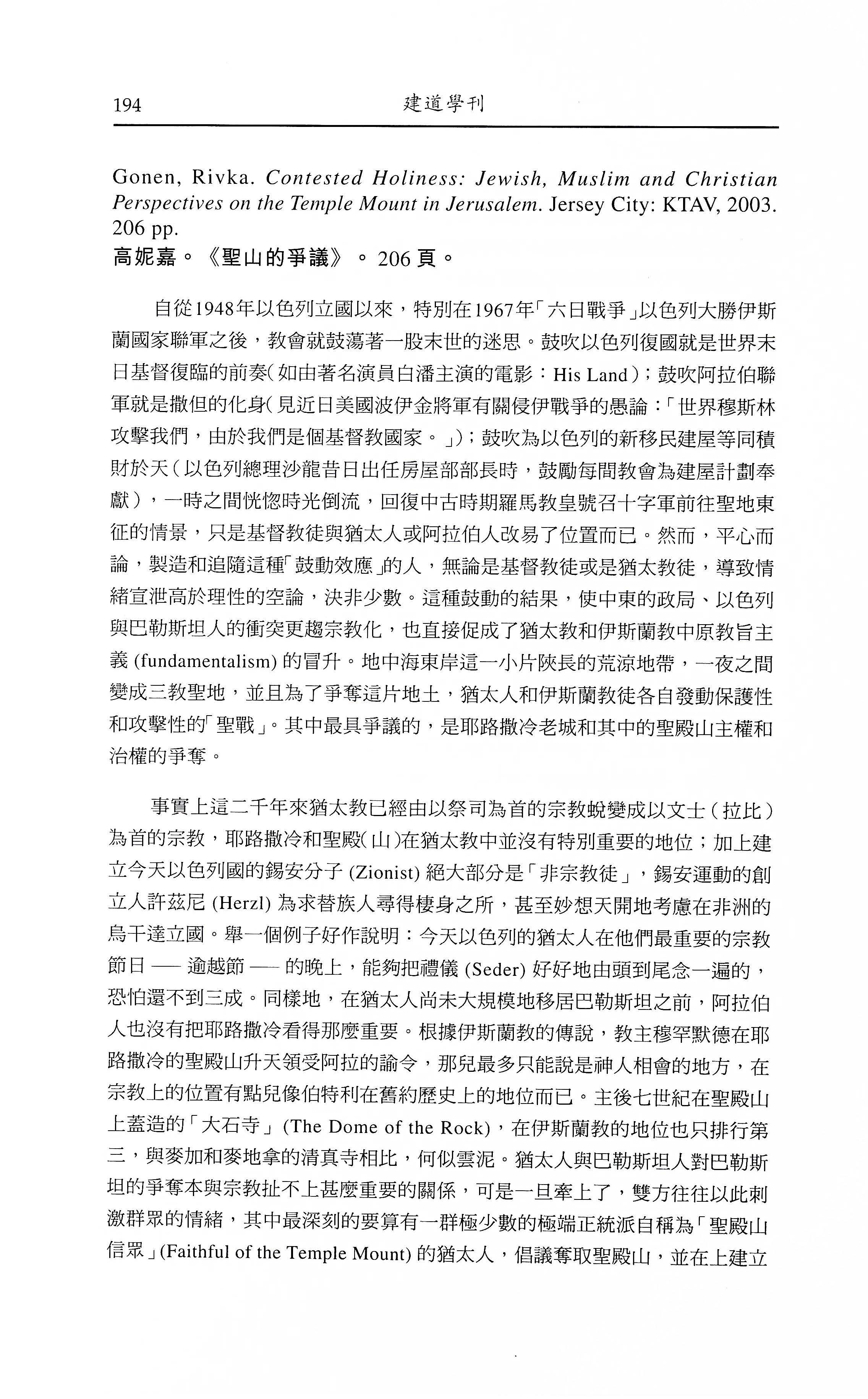 高妮嘉。《聖山的爭議》。(Gonen, Rivka. Contested Holiness: Jewish, Muslim And Christian Perspectives On The Temple Mount In Jerusalem.)/甘汝誠