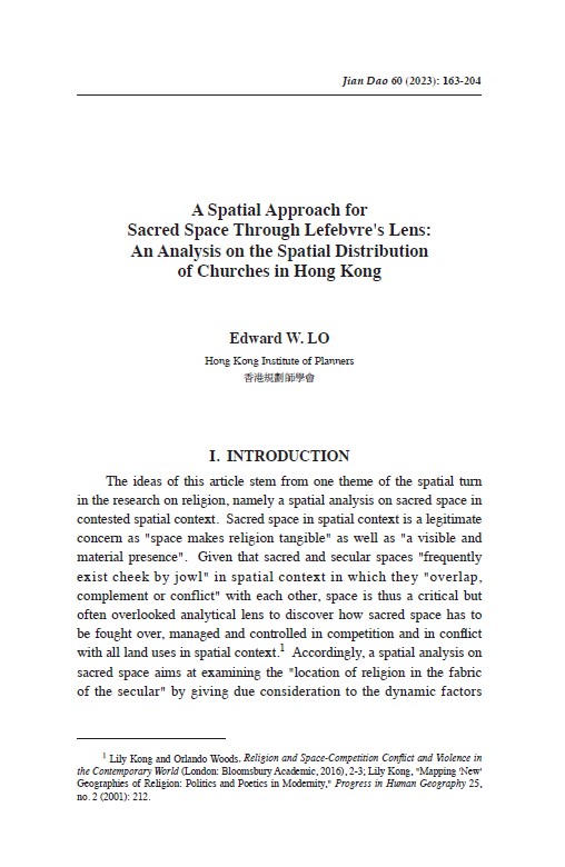 A Spatial Approach for Sacred Space Through Lefebvre's Lens: An Analysis on the Spatial Distribution of Churches in Hong Kong / Edward W. Lo