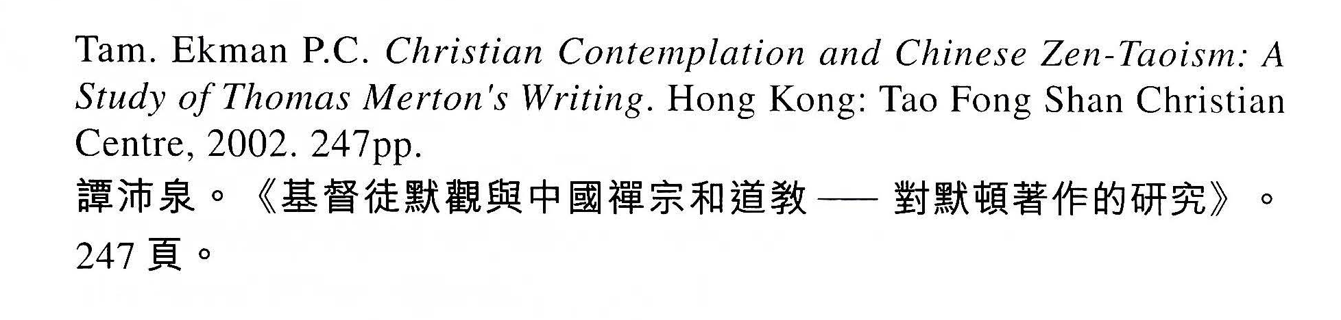 楊慶球。《存有與認識──檢討托倫斯的基督性科學觀》。(Yeung, Jason Hing-Kau. Being and Knowing:An…