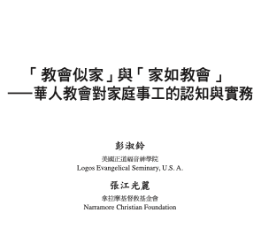 「教會似家」 與 「家如教會」——華人教會對家庭事工的認知與實務/彭淑鈴、張江光麗