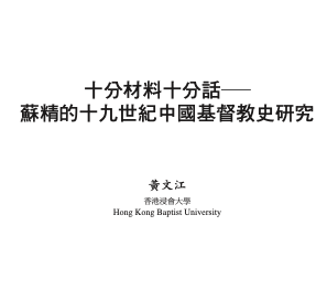 十分材料十分話——蘇精的十九世紀中國基督教史研究/黃文江